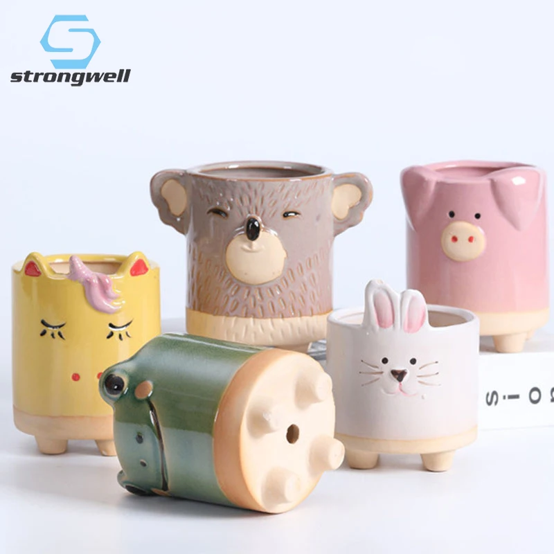 Миниатюрные керамические цветочные горшки с мультяшными животными