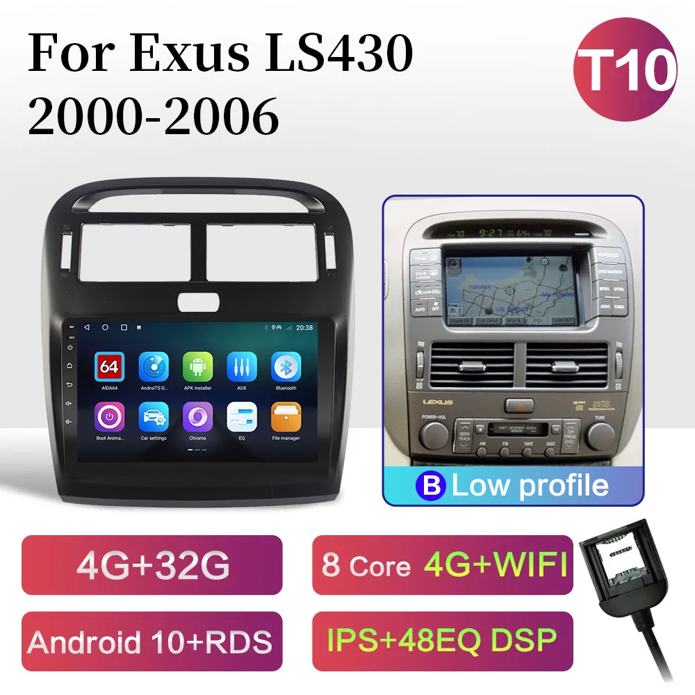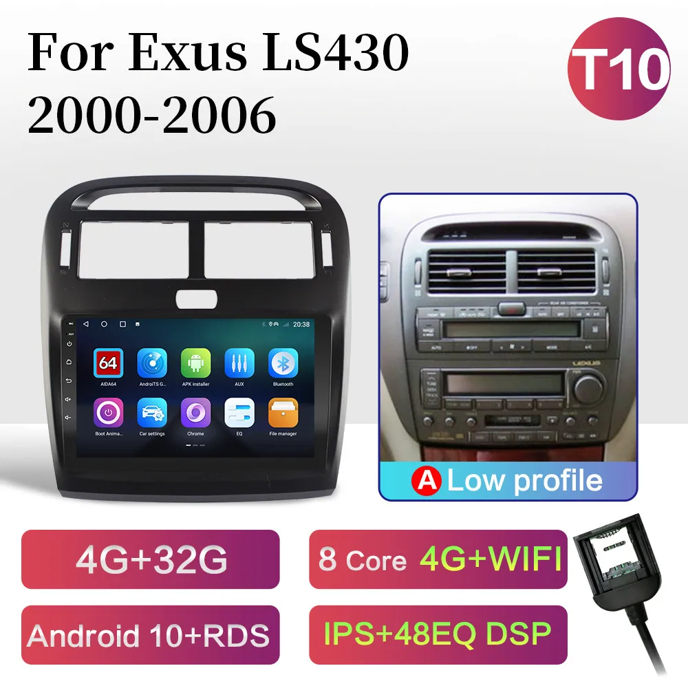 Автомагнитола 2 DIN, 4G, Android 10, мультимедийный видеоплеер для Lexus LS430, XF30, 2000, 2001, 2002, 2003-2006, GPS-навигация, аудио, 2 DIN