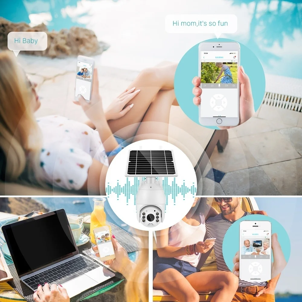 Наружное наблюдение 4x Zoom Солнечная 1080P камера Wifi металлическая купольная камера видеонаблюдения беспроводной монитор облачный PIR солнечная панель 360 видео камера