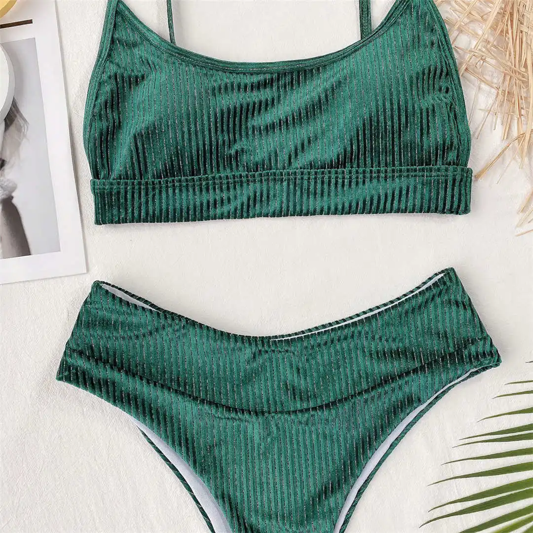 Женский купальник в рубчик, комплект бикини из двух частей, стринги...