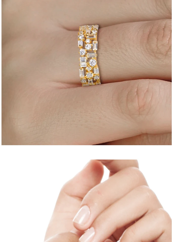 Женские сверкающие кольца SANTUZZA, из стерлингового серебра 100% пробы с белым кубическим цирконием золотого цвета, модные ювелирные украшения