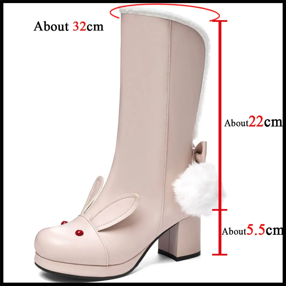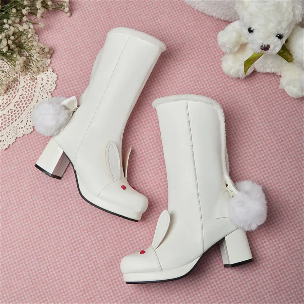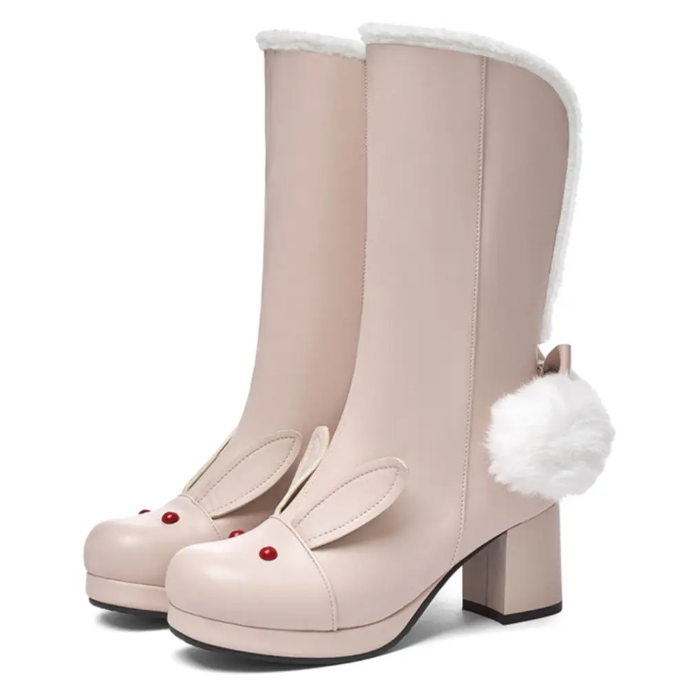 --- Стиль 3 --- теплые зимние сапоги с милыми заячьими ушками на массивном каблуке