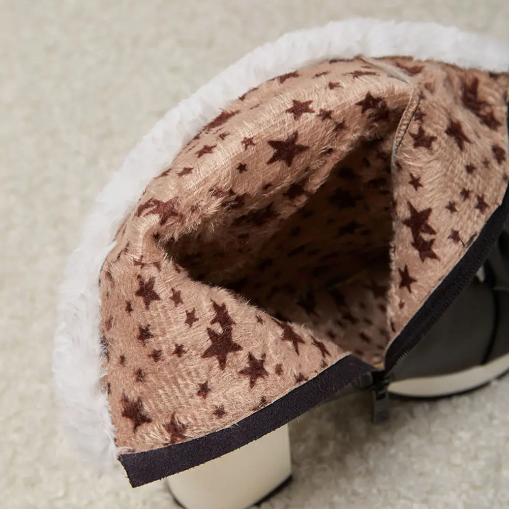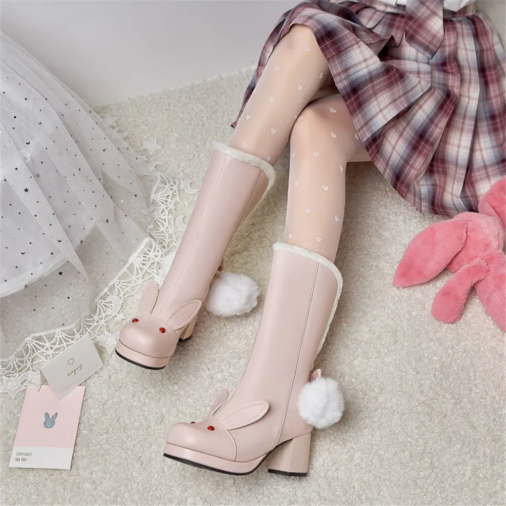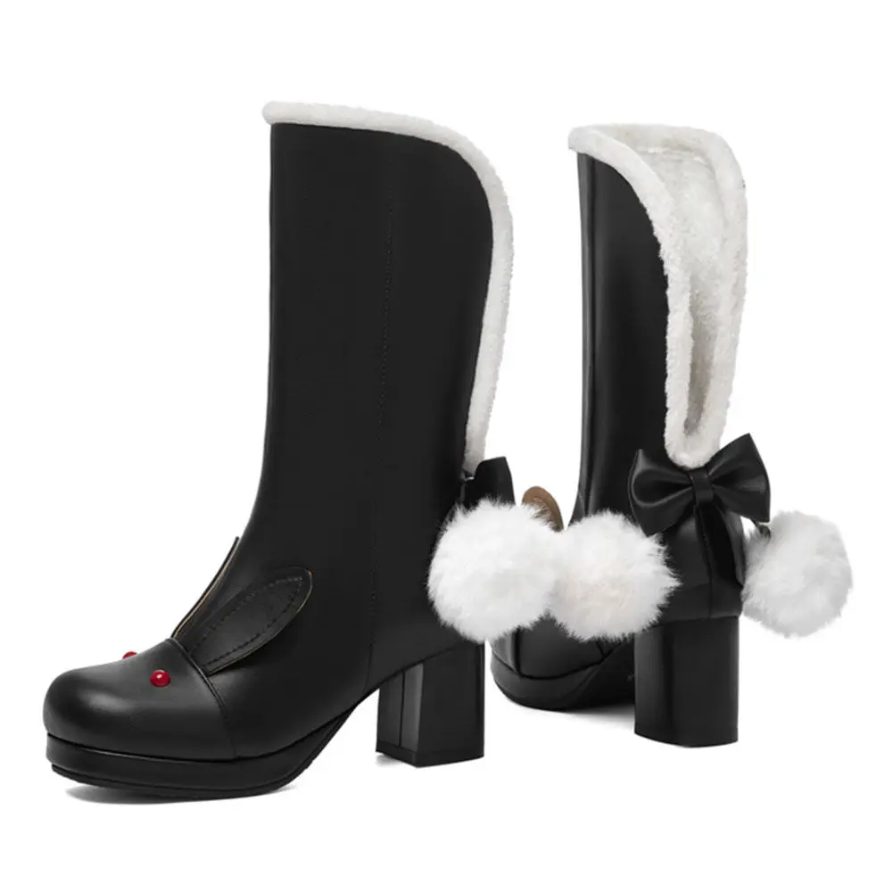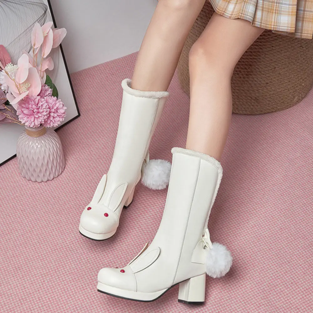 --- Стиль 3 --- теплые зимние сапоги с милыми заячьими ушками на массивном каблуке