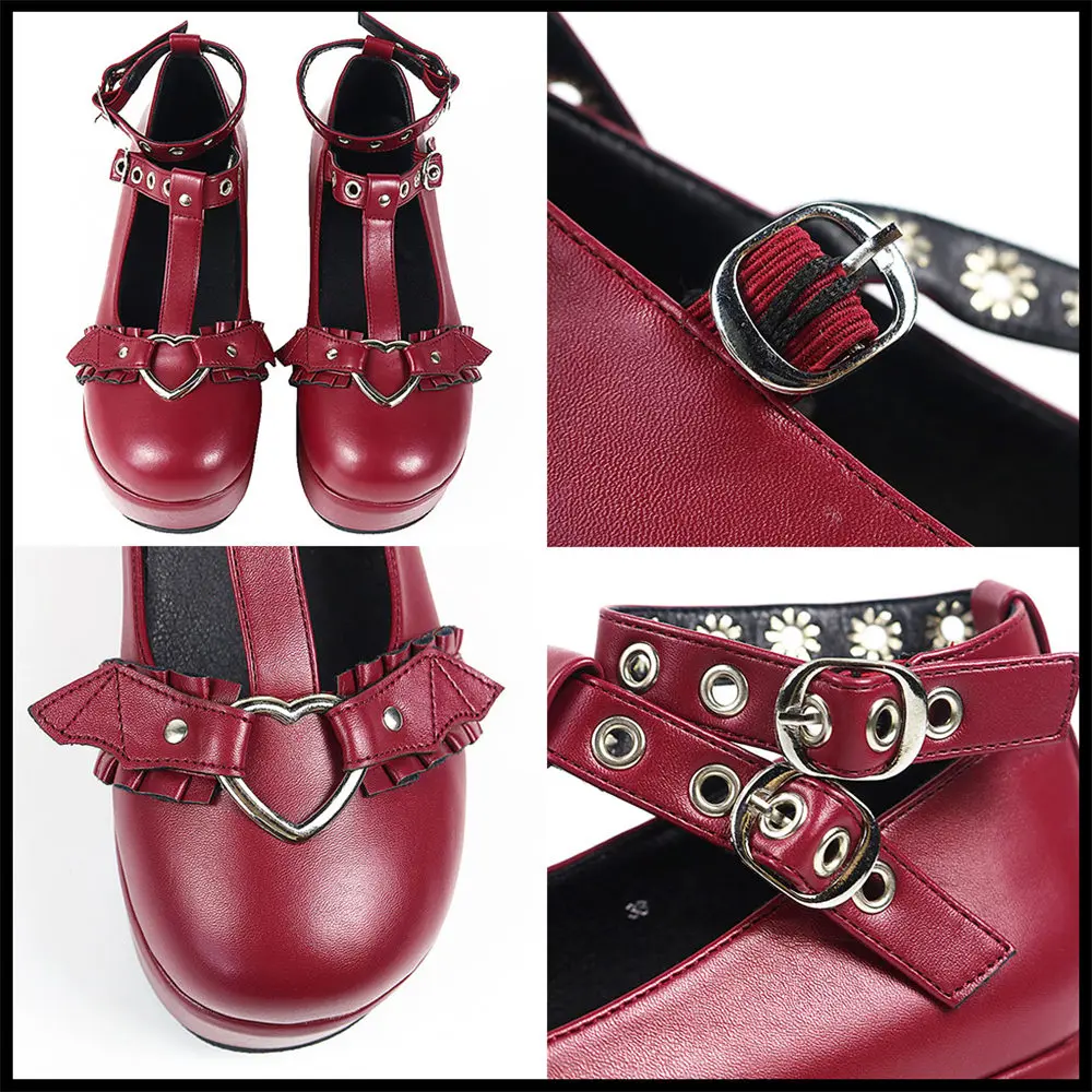 Женские туфли на платформе, черные туфли с оборками и крыльями летучая мышь, в готическом стиле
