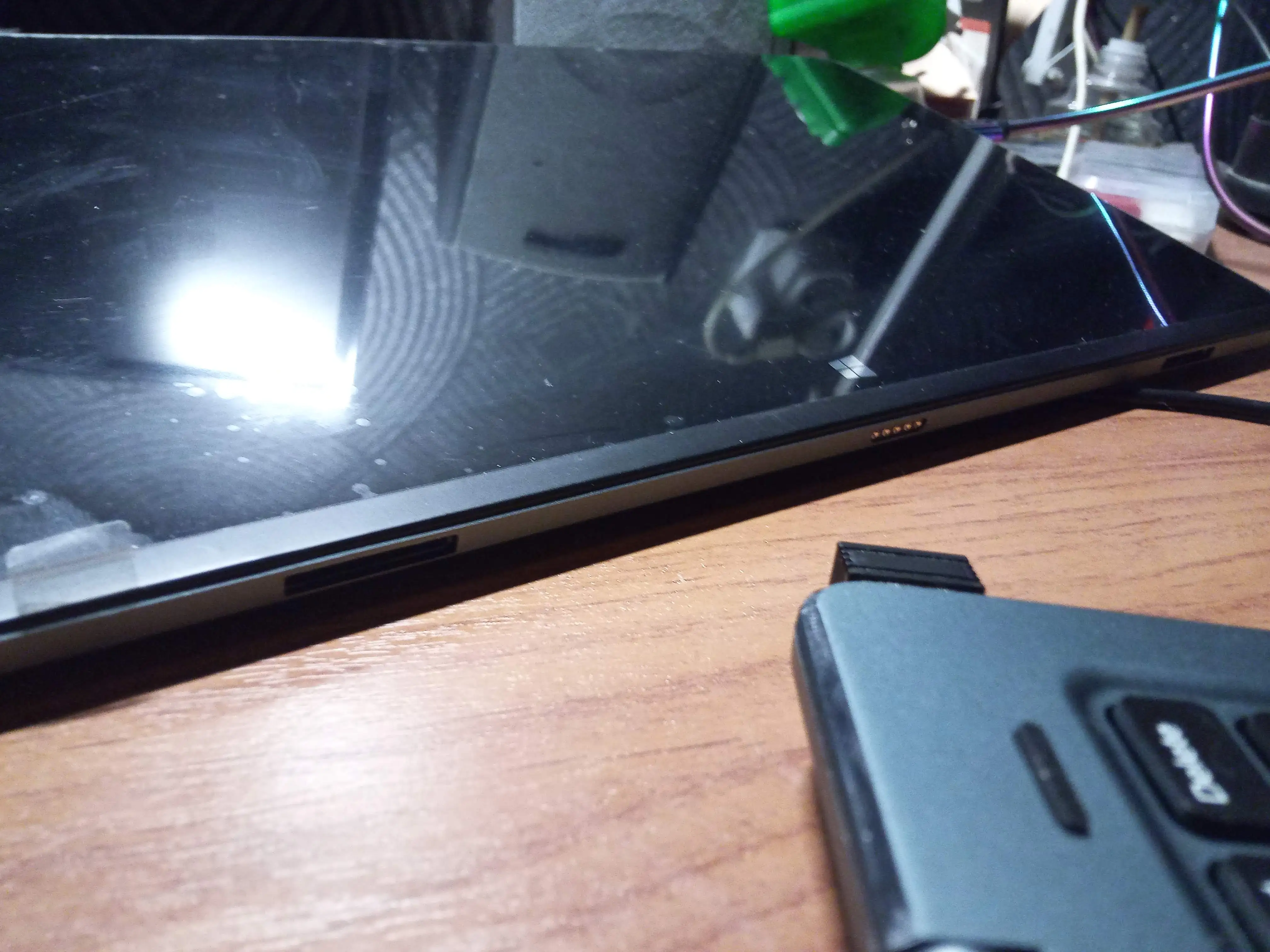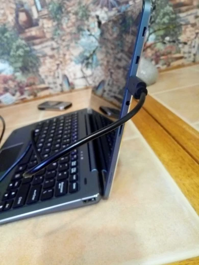 Отличный планшет! Чётко стыкуется с клавиатурой магнитными штыревыми фиксаторами и подпружиненными контактами. Планшет может потерять с клавиатурой связь только если отклонить экран слишком далеко назад, до упора ограничителя, это не проблема, к этой особенности быстро привыкаешь (на приложенном фото максимальный угол открытия). Даже в машине от вибраций связь не теряется. Будьте внимательны! Сразу из коробки пины интерфейса связи с клавиатурой покрыты чем-то, видимо от коррозии, чтобы появилась связь, нужно их протереть спиртом при самой первой "стыковке". Отзывчивый сенсорный экран - жесты одним и двумя пальцами, а также двойные клики чётко понимает . Вот тачпад - так себе, лучше или тыкать в экран, или подключать мышь. В клавиатуре 2 полноразмерных USB 2.0 порта. На боку самого планшета ещё usb type c (для зарядки и передачи данных) и usb Micro B (только для передачи данных данных). Скорости этих портов тоже как usb 2.0 Звук достаточно громкий, честное стерео.