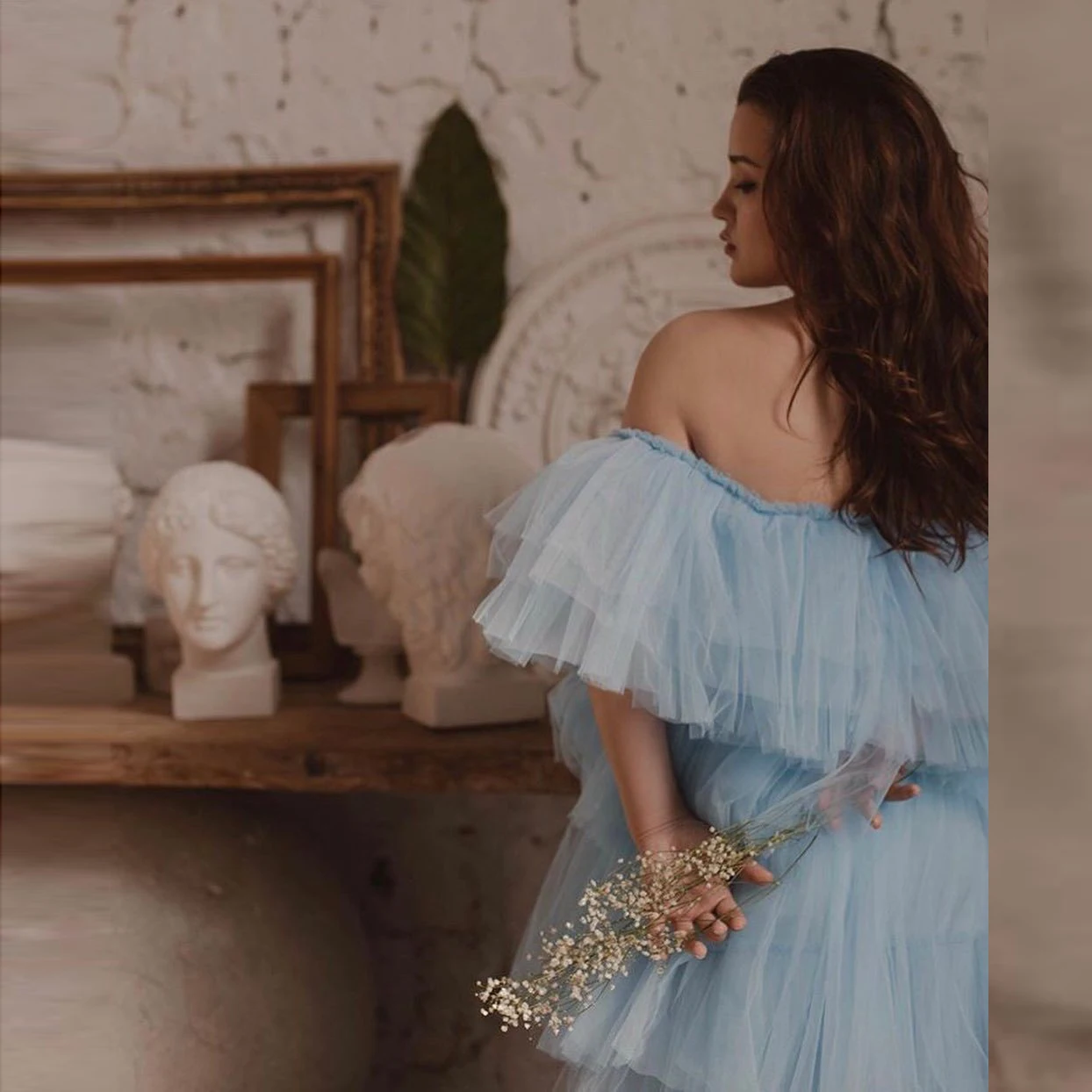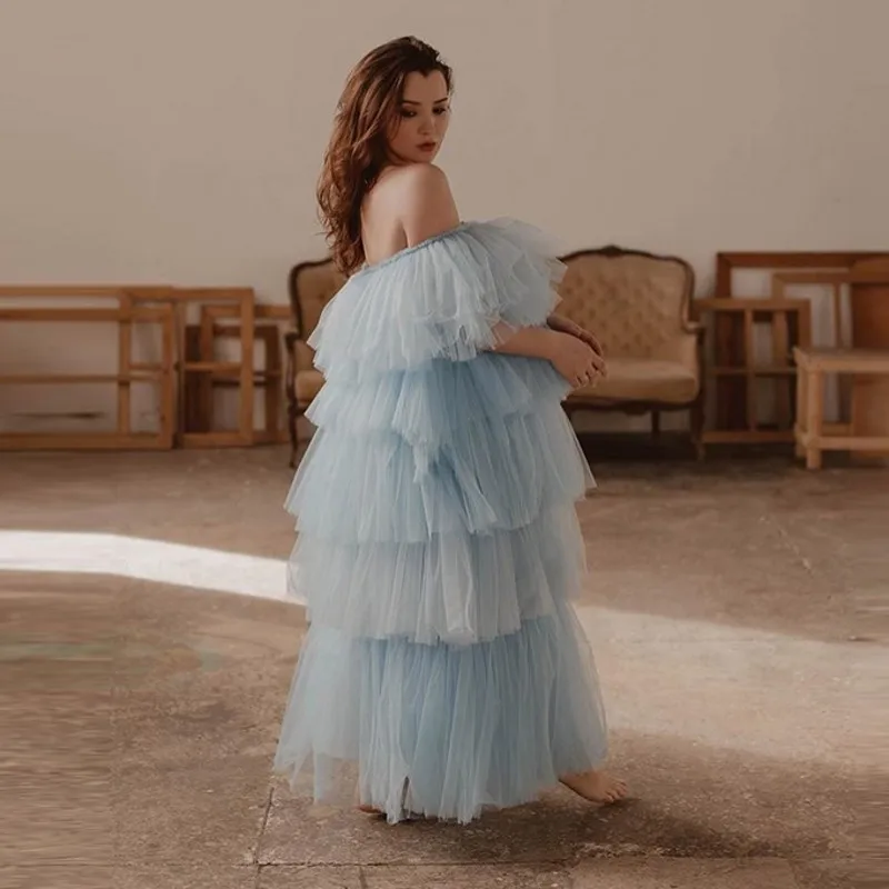 Светильник-голубое длинное Тюлевое женское платье без бретелек женское Многоярусное Тюлевое эластичное весеннее платье Yong для девушек Женская праздничная одежда