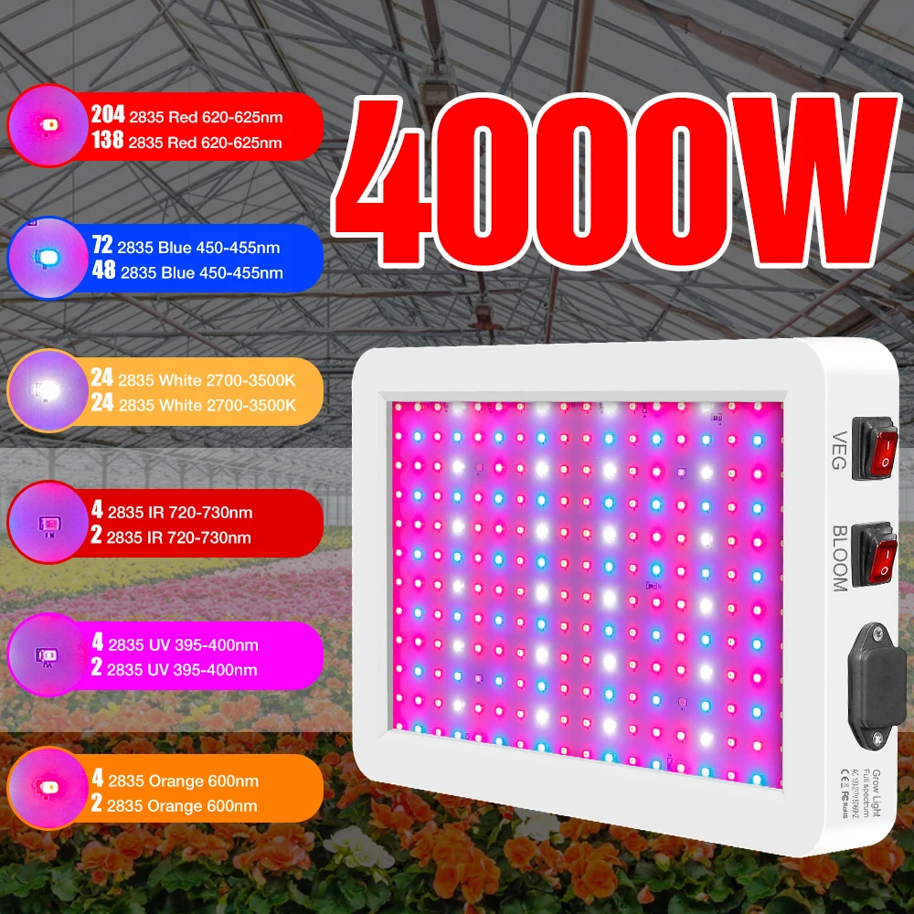 Роста растений светильник полный спектр Светодиодный лампа для рассады 4000W 5000W светодиодный Панель Водонепроницаемый Фито лампа 2835 фитолампа для внутреннего гроубокс