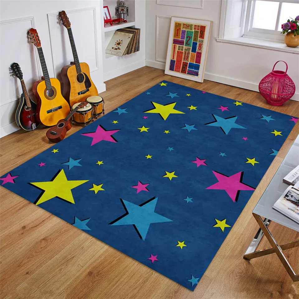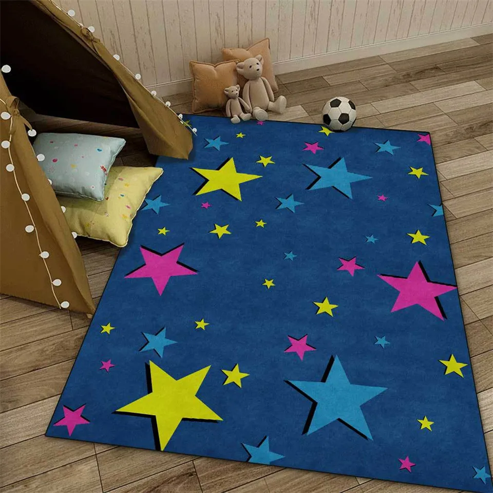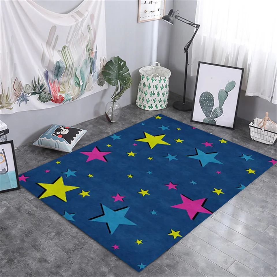 Цветной голубой Детский напольный коврик со звездами, ковер для спальни, мультяшный ковер для мальчиков и девочек, детский коврик для ползания, прикроватный ковер, игровой коврик