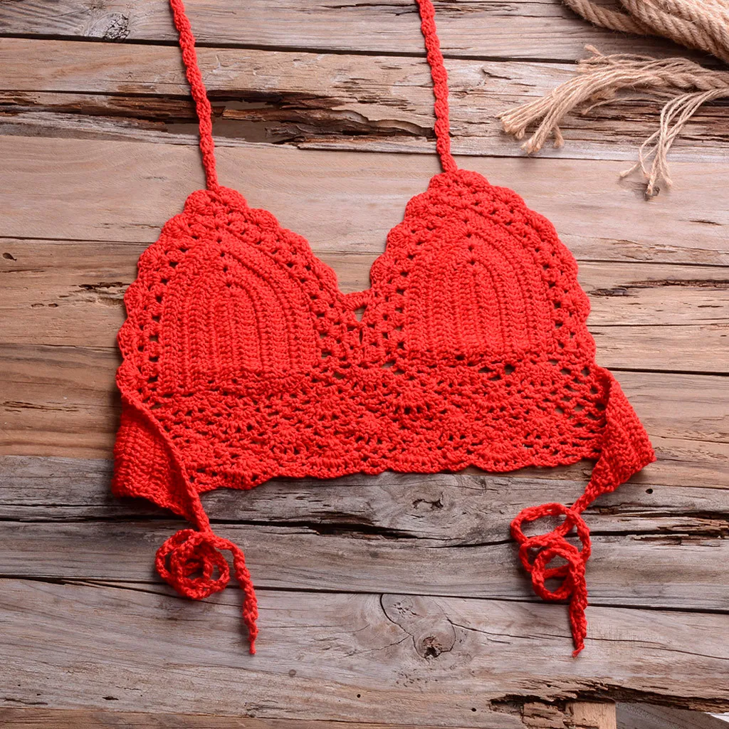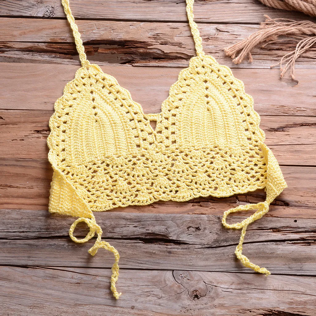 Женский сексуальный топ бикини, вязаный купальник с подкладкой, пляжная одежда, кружевной купальник