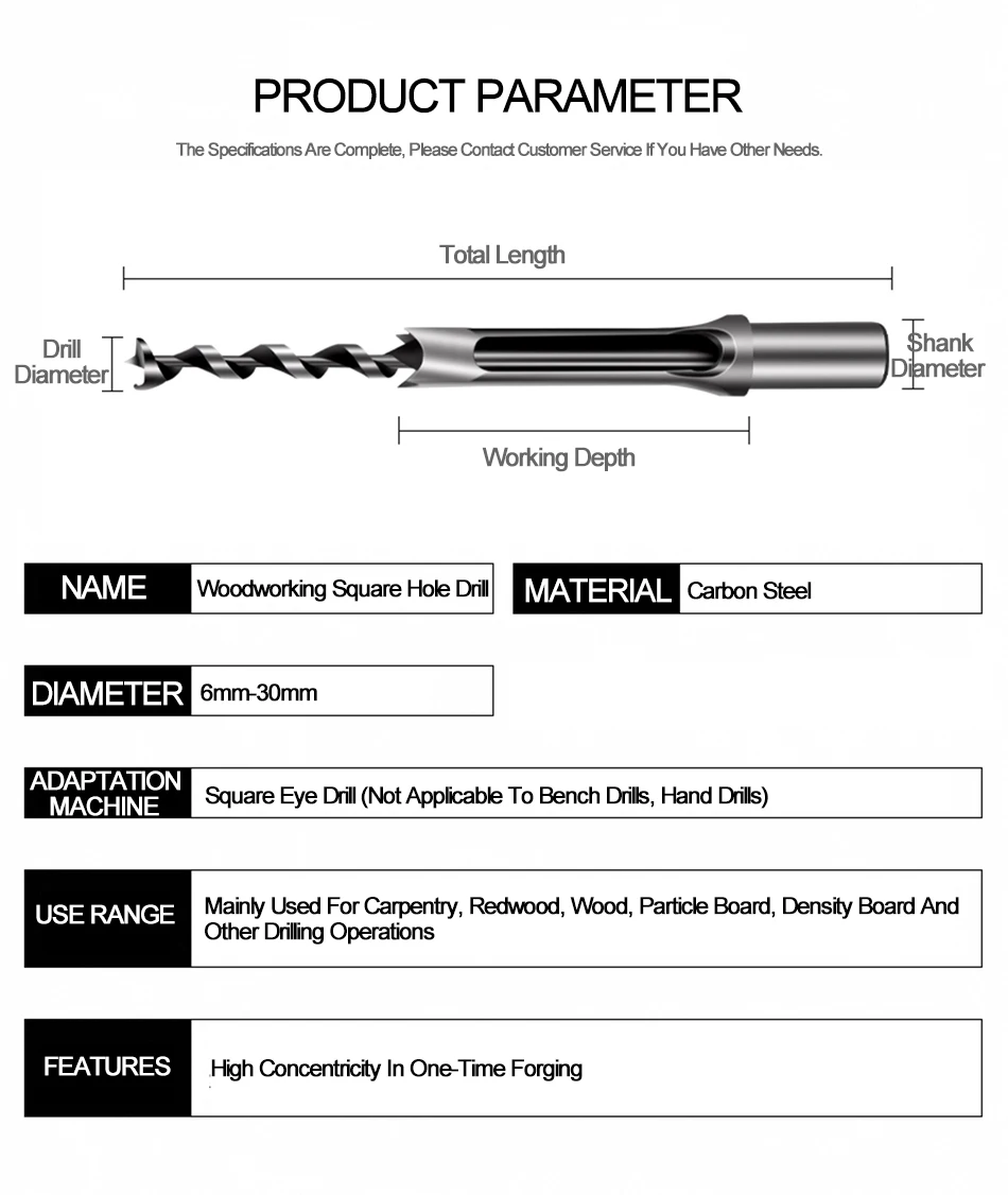 Спиральные сверла для дерева, древесная плита из ДСП, плотность, квадратное отверстие, спиральное долото, наборы резцов для квадратных отверстий