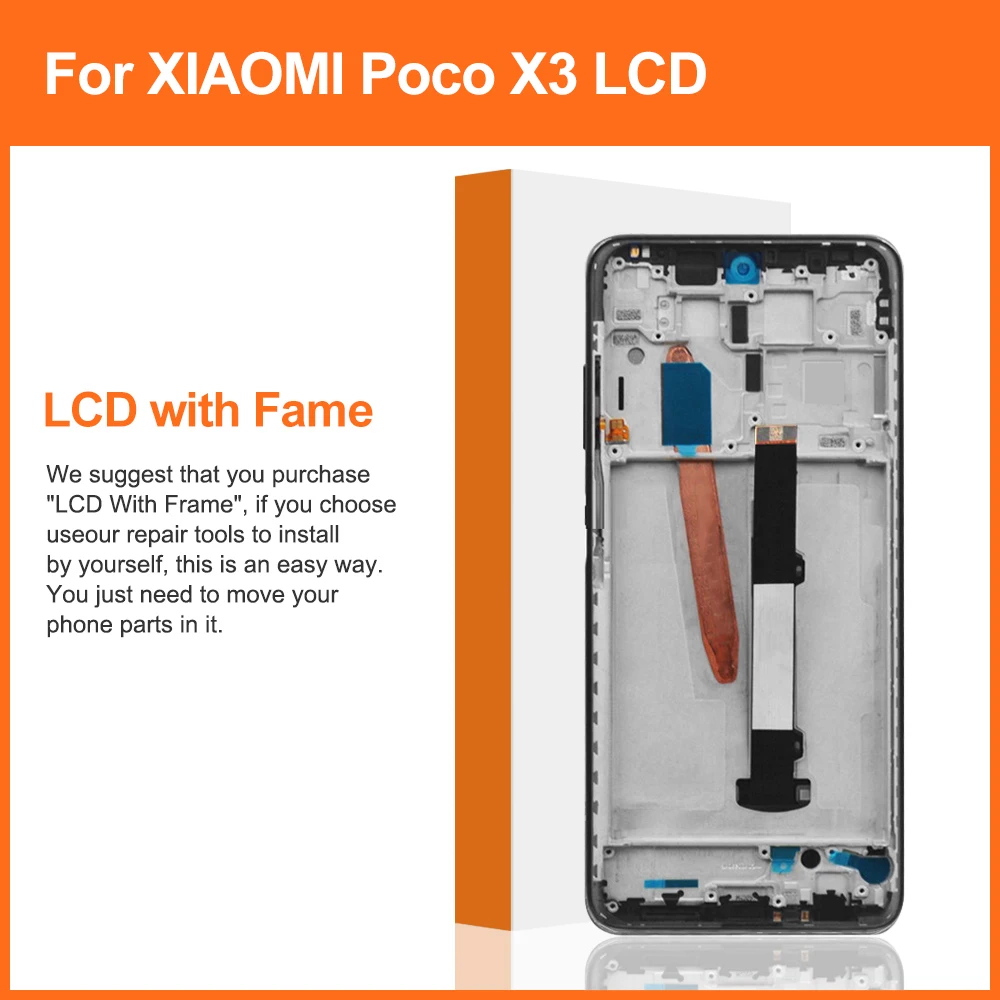Оригинальный дисплей 6,67 ''для Xiaomi Poco X3, ЖК-дисплей с сенсорным экраном и дигитайзером в сборе для Xiaomi PocoX3, ЖК-дисплей + рамка M2007J20CG