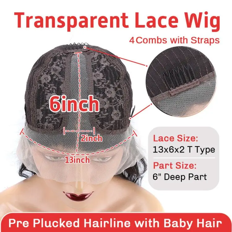Парик из натуральных волос 13x 4Transparent на сетке спереди, брази...
