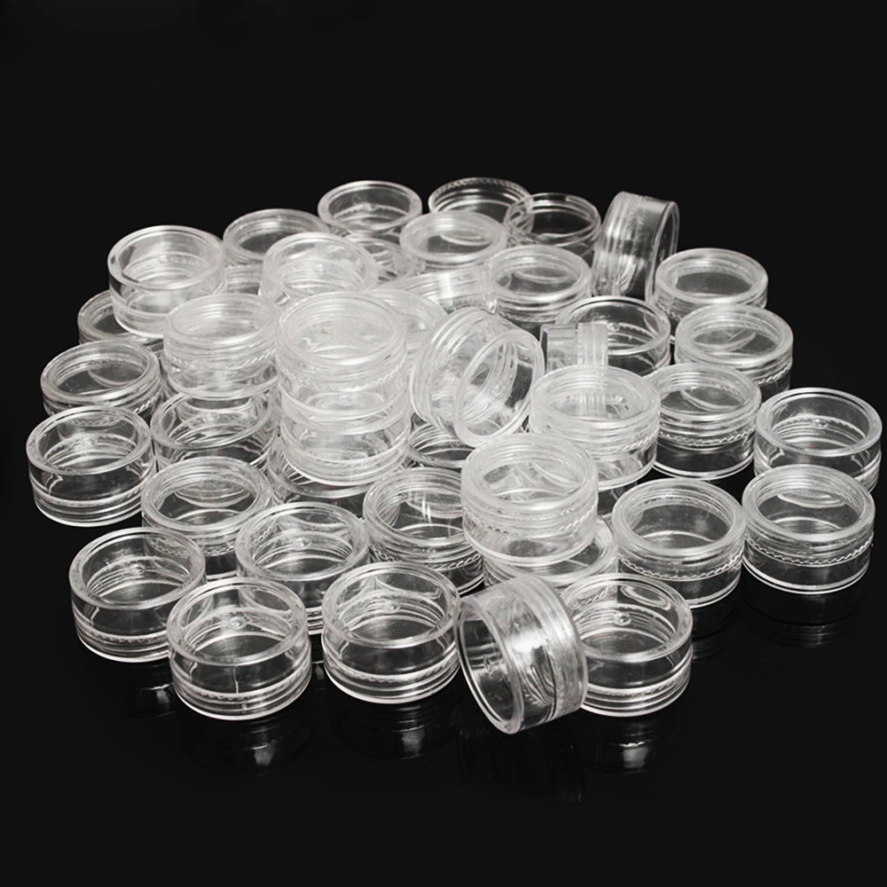 Прозрачный пластиковый бокс для хранения ювелирных украшений, 50 шт., 2,5 мл, маленькие круглые контейнеры банки органайзеры, портативный бокс для косметики