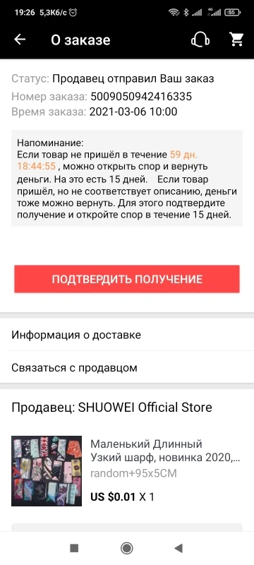 Страна: UA Color: 74 Size: 95x5CM Доставка: Cainiao Super Economy 27.02.2021
