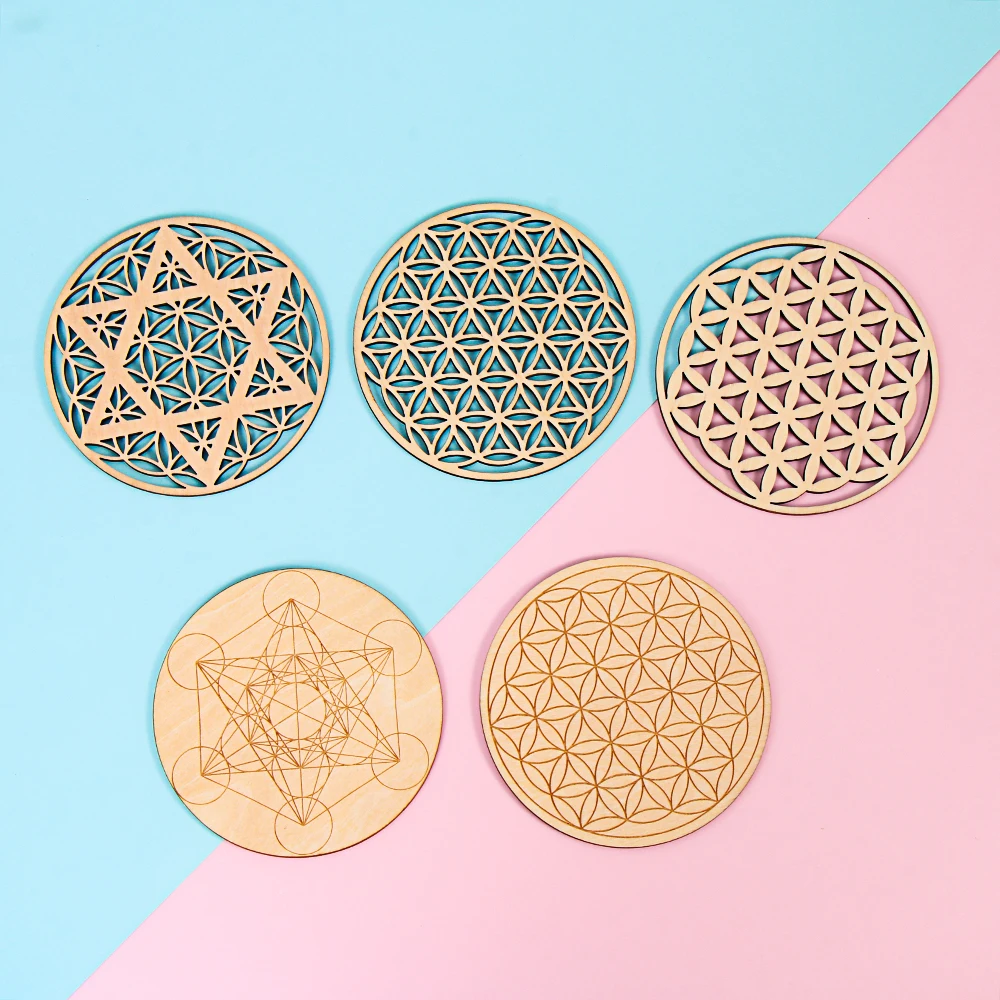1 шт. креативная чакра узор подставка под горку деревянный цветок жизни натуральный символ круглые края подставка для камня набор кристаллов DIY Deco