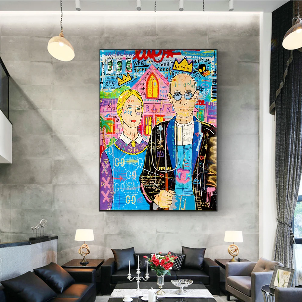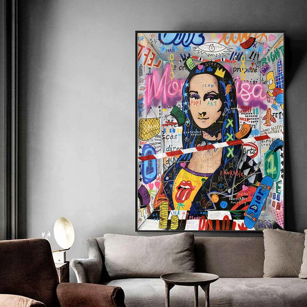 Граффити, Мона Лиза, монополия, уличное искусство, холст, абстрактная картина, Настенная картина, Постер для украшения гостиной, дома