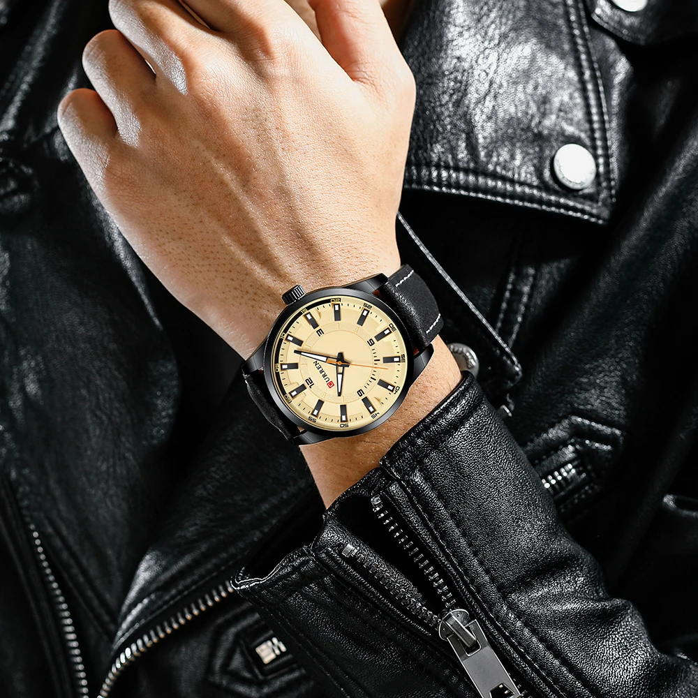 Часы мужские кварцевые с кожаным ремешком, цветные, водонепроницаемые