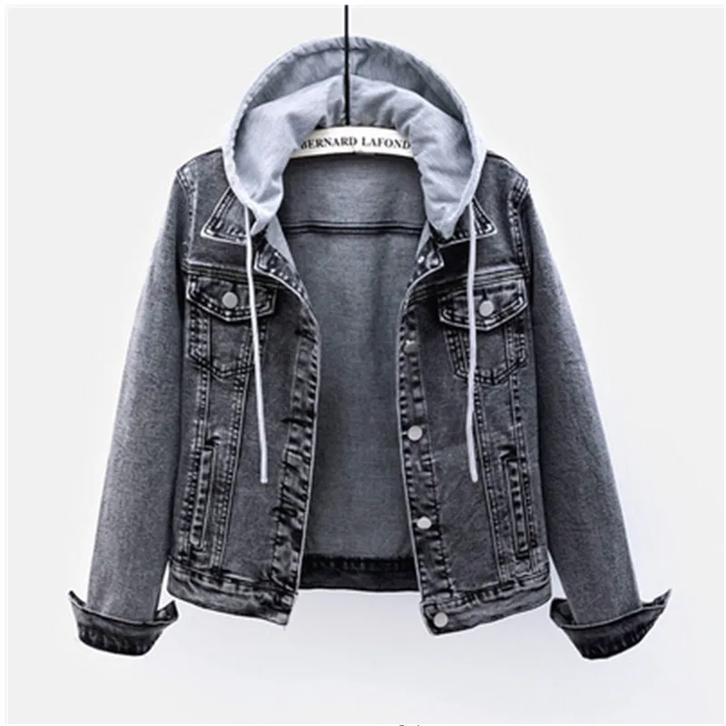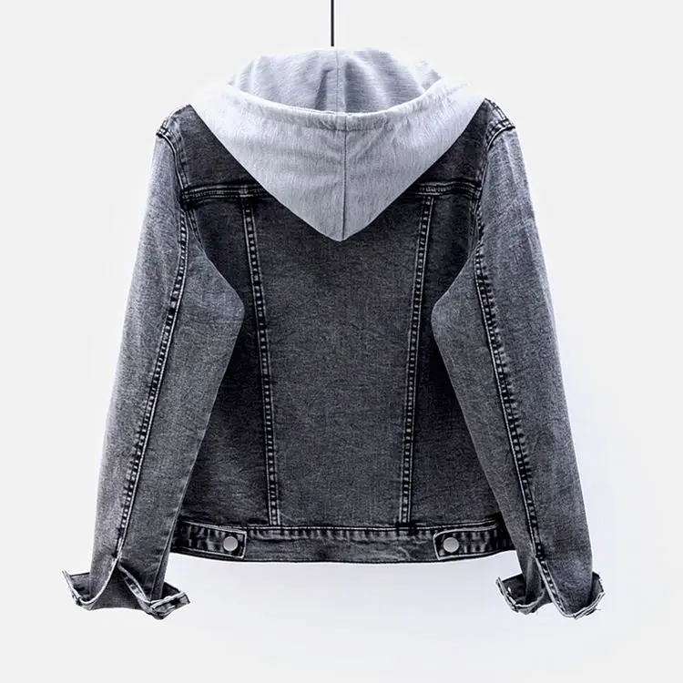 Куртка женская джинсовая со съемным капюшоном, жакет из денима с дырками, верхняя одежда, базовая верхняя одежда, большие размеры, на весну-осень