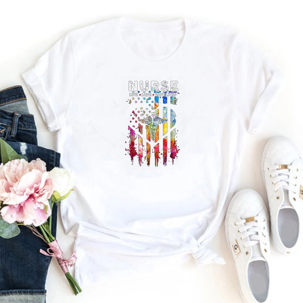 Футболка женская летняя с коротким рукавом и круглым вырезом, с принтом