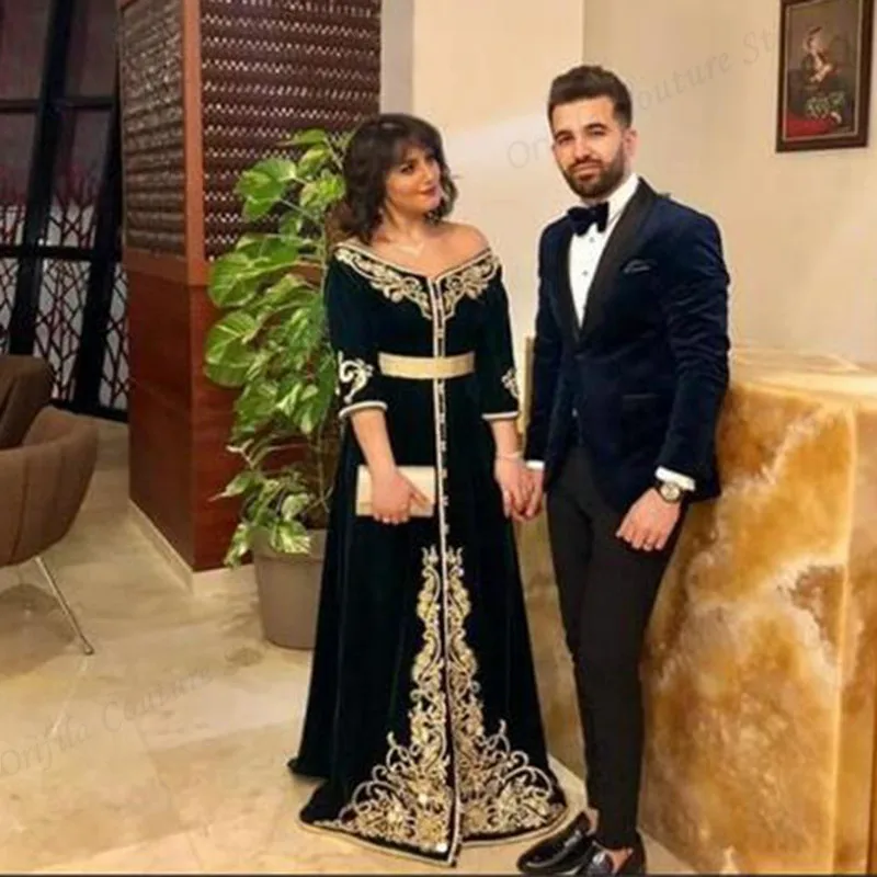 Марокканские платья Caftan, черные велюровые вечерние платья с открытыми плечами, Золотое кружево, арабское мусульманское платье для выпускного вечера, официальная неформальная одежда для вечеринки