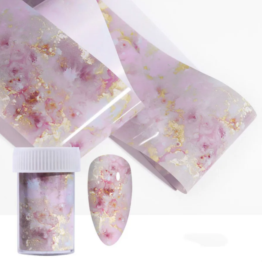 Фольга для ногтей, 10050x4 см, мраморная серия, розовая, синяя фоль...