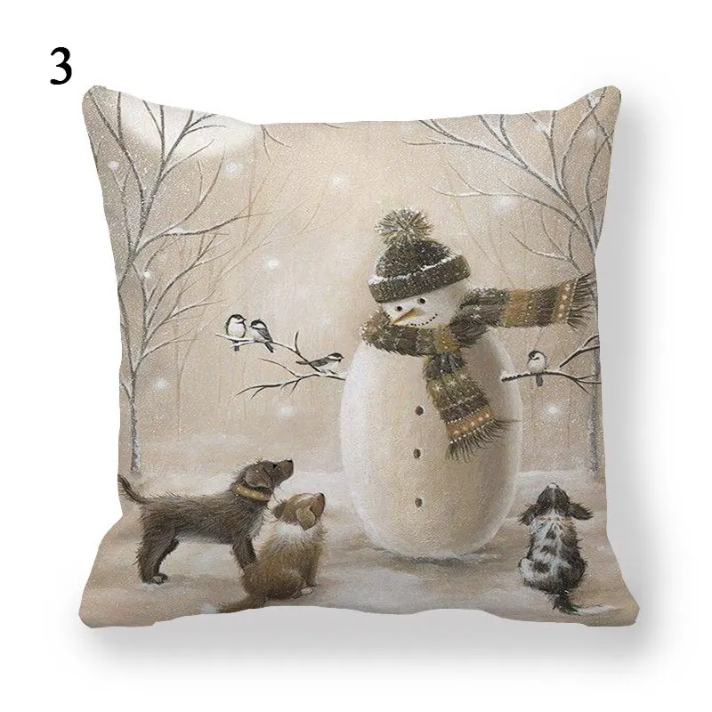 Наволочка на рождественскую подушку, с изображением лося, снеговика