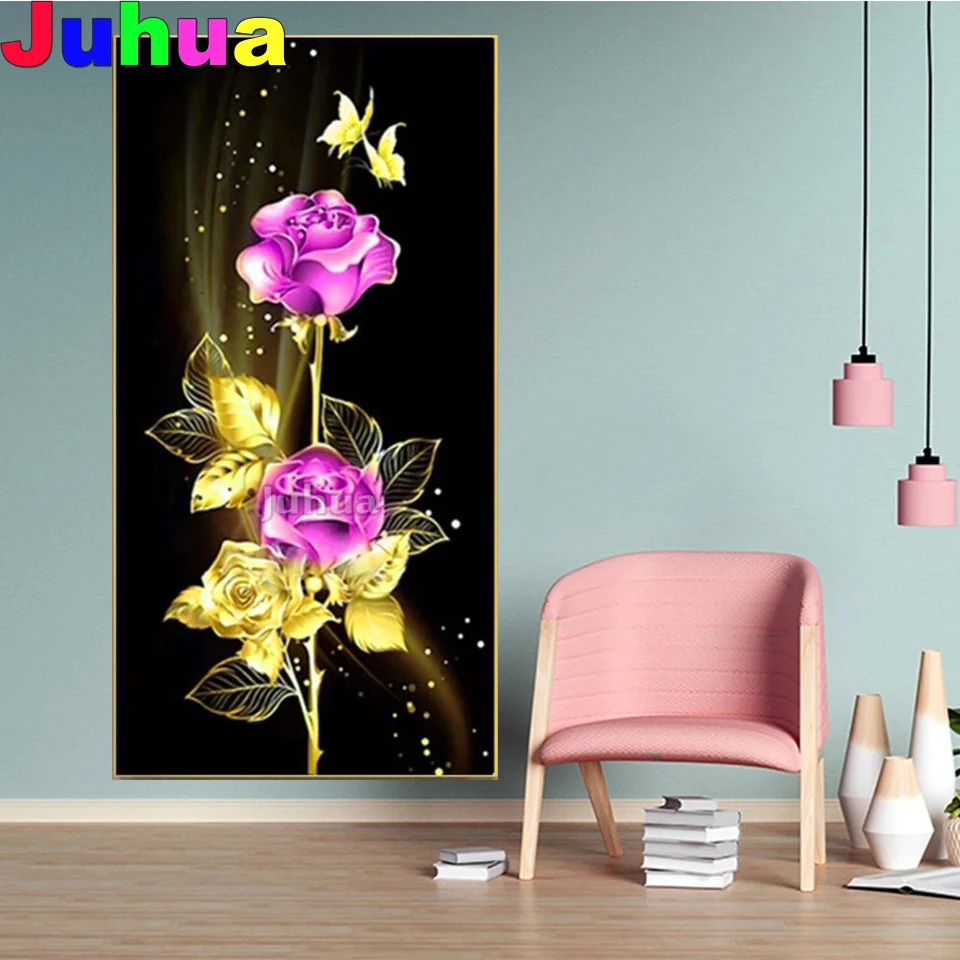 Современная Алмазная вышивка с розовыми цветами, мозаика, Современн...