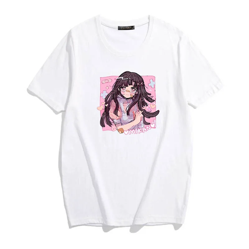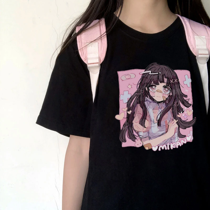 Mikan Tsumiki мультфильм аниме кавайные милые девушки Японская уличная одежда Harajuku повседневные топы Ulzzang винтажные E-Girl Женская летняя футболка