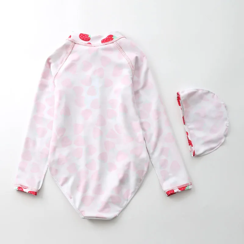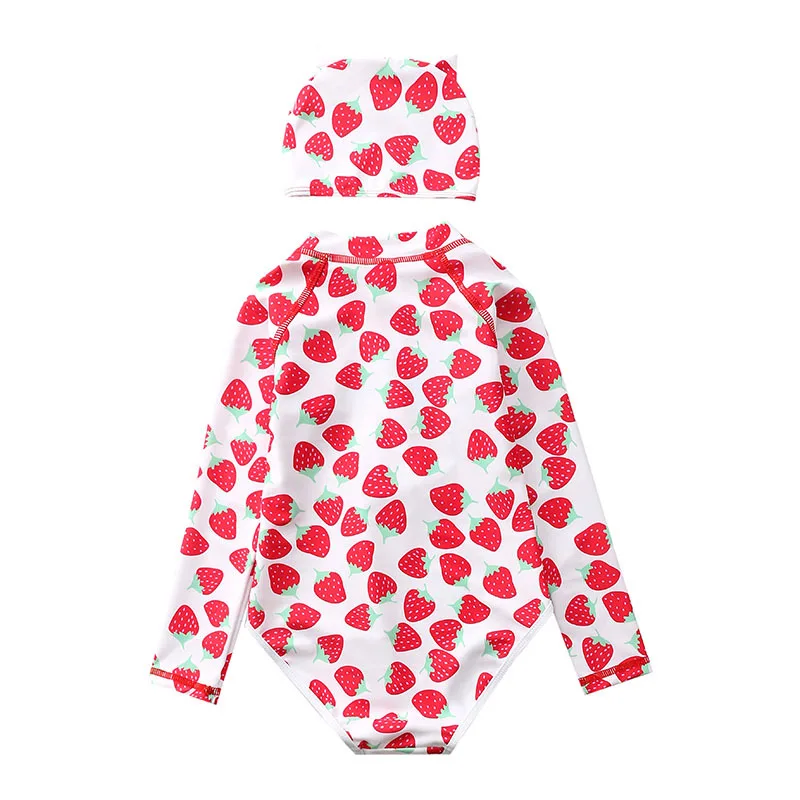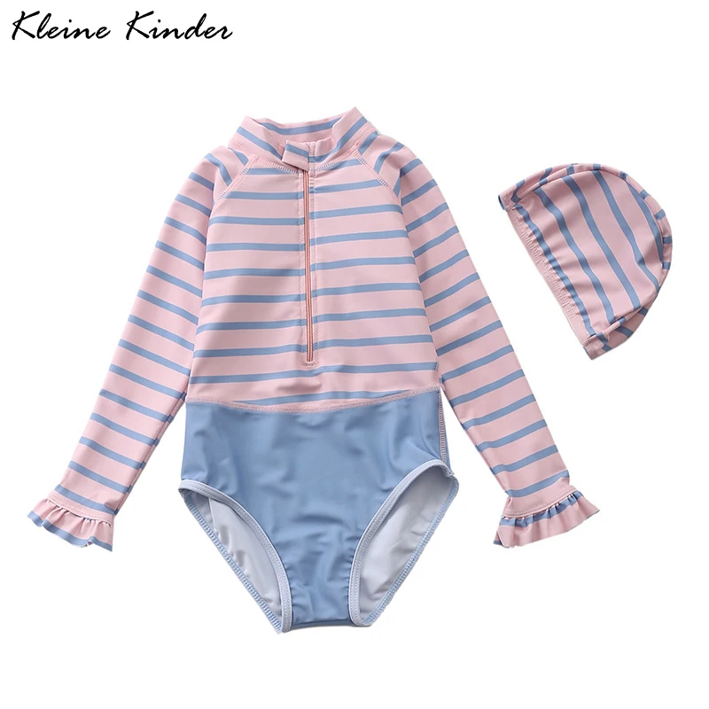 Купальник для девочек Цельный с шапочкой для плавания полосатый цветочный с длинными рукавами детский купальник Рашгард детский купальный костюм для маленьких девочек