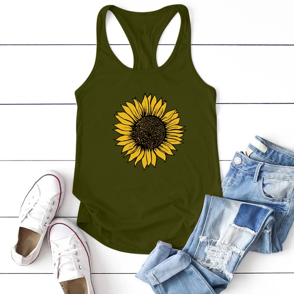 Женская майка без рукавов, Повседневная Свободная футболка с круглым вырезом, лето принтом в виде цветов подсолнуха, 2021