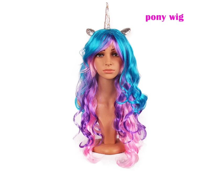 Косплей пони Единорог парик Русалка волосы Хеллоуин костюм аксессуары для дефиле реквизит для дня рождения, вечерние
