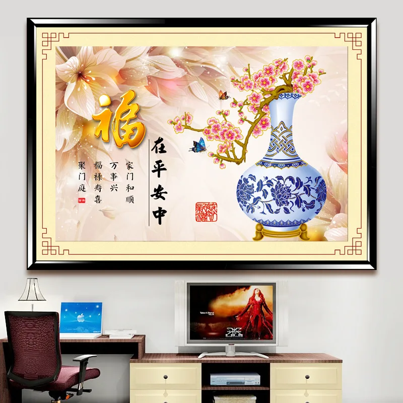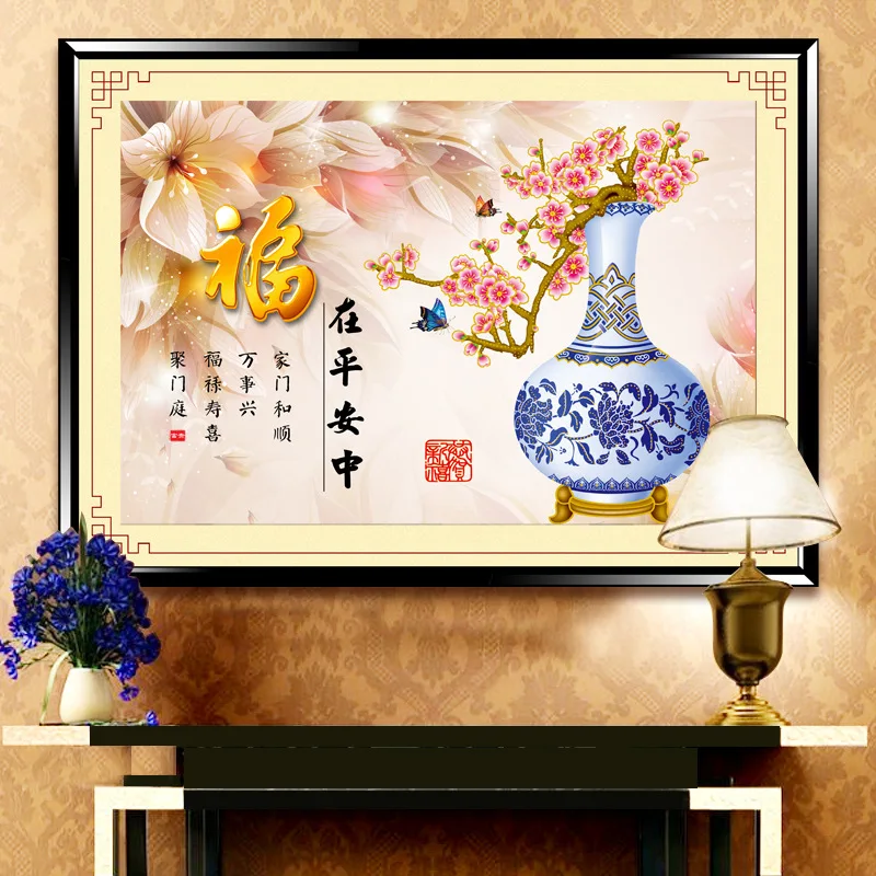 Алмазная вышивка, китайский иероглиф FU, благословения скрыты в безопасности, сине-белый фарфор, полноразмерная картина, вышивка крестиком