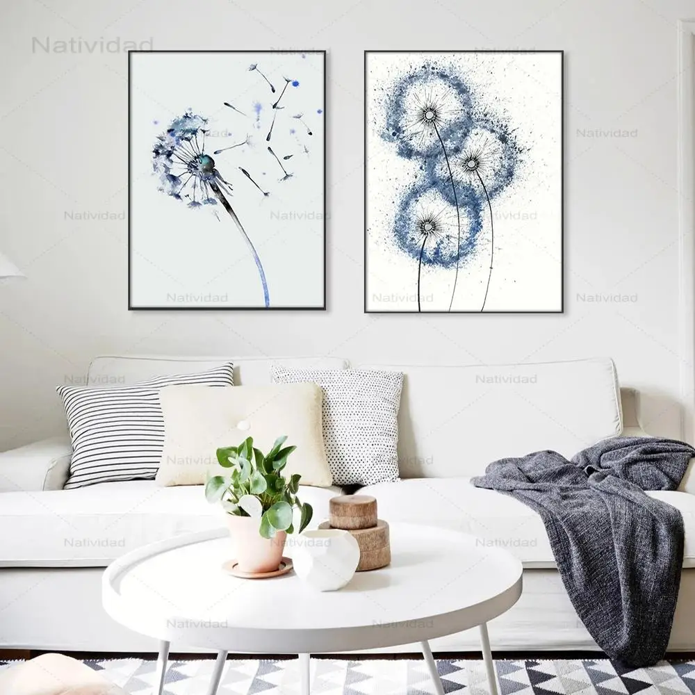Картина на холсте с изображением голубого одуванчика, художественные плакаты и принты, без рамы