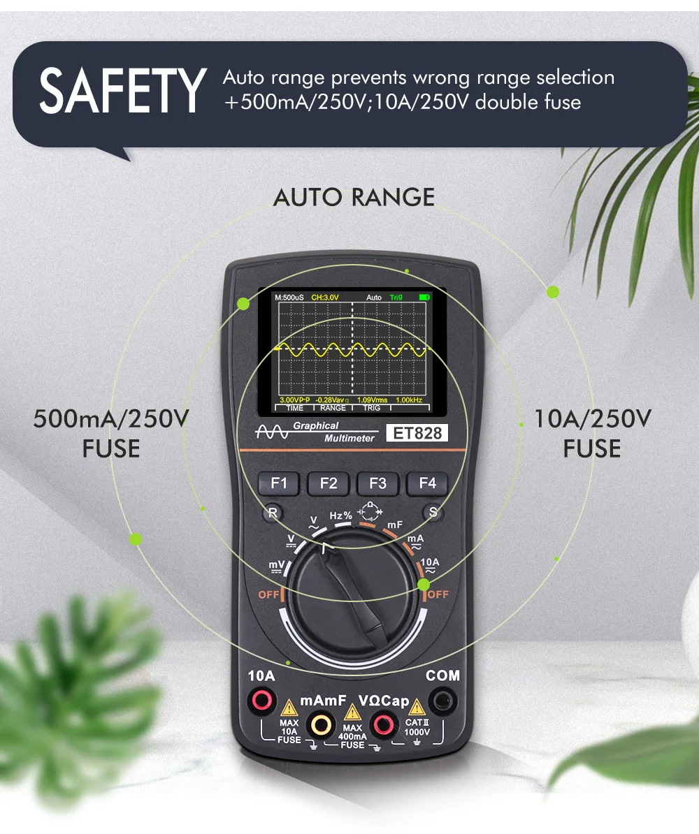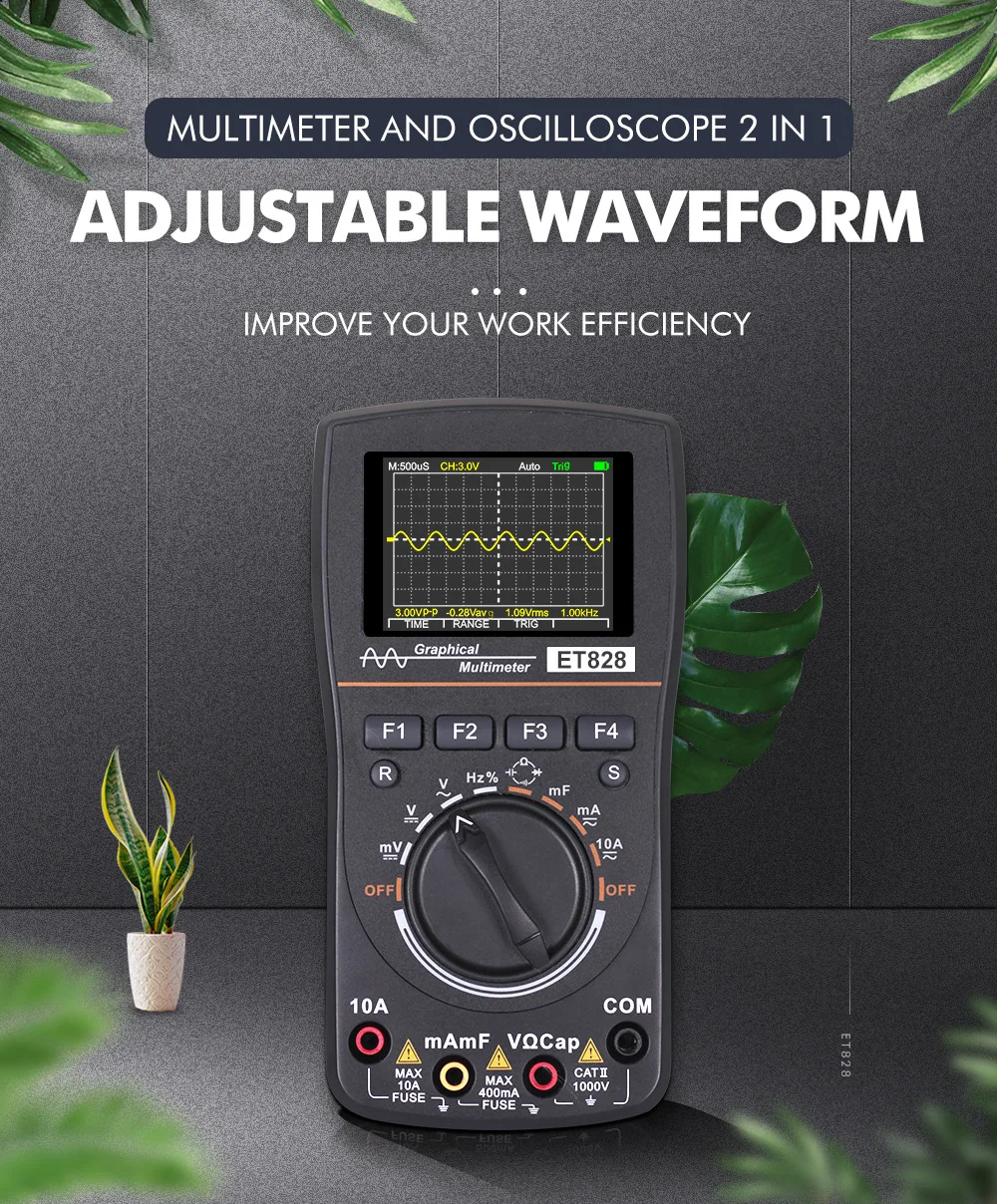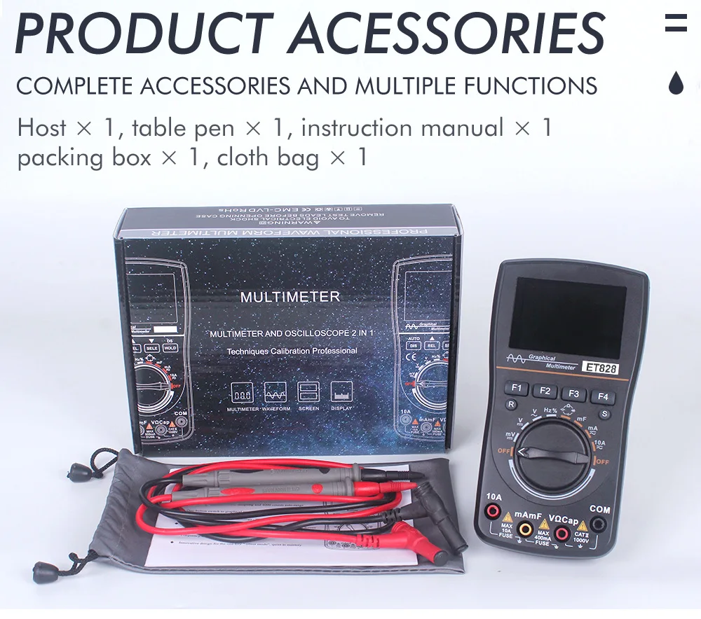 Цифровой осциллограф MT8208 HD, 2 в 1, с цветным экраном 2,4 дюйма, полоса пропускания 1 МГц, 2,5 мс