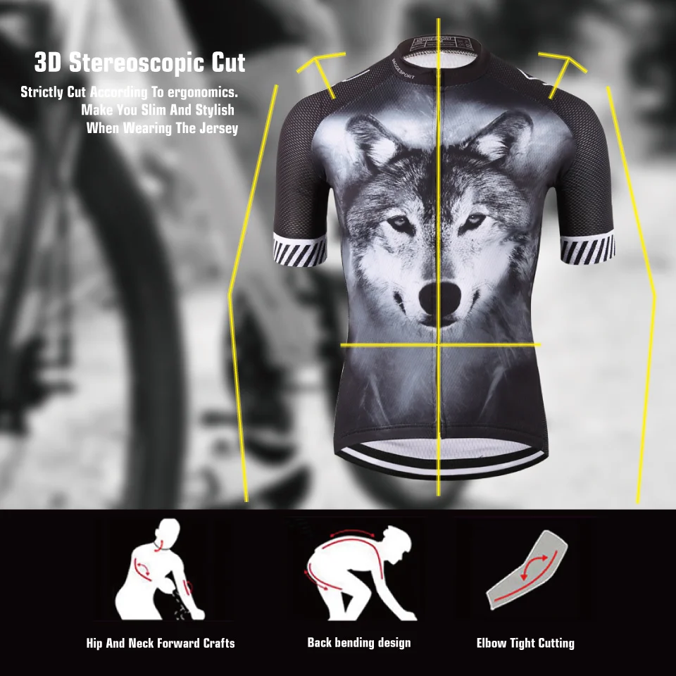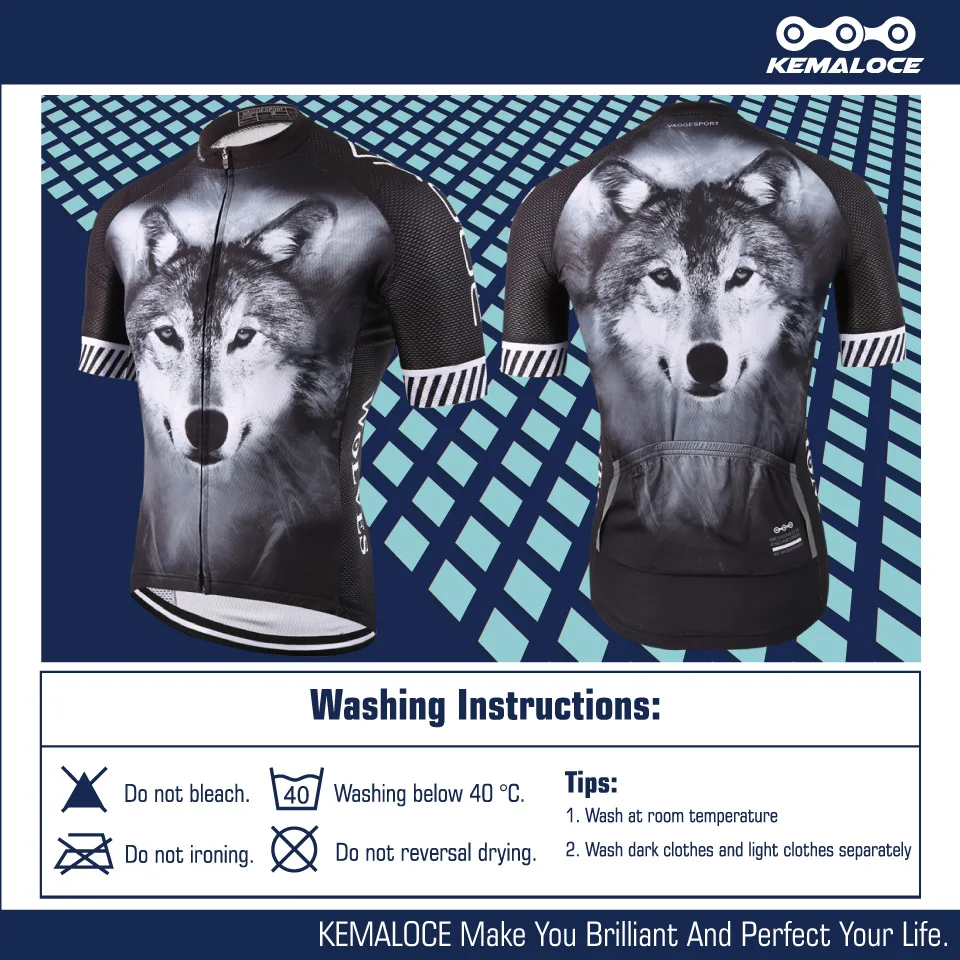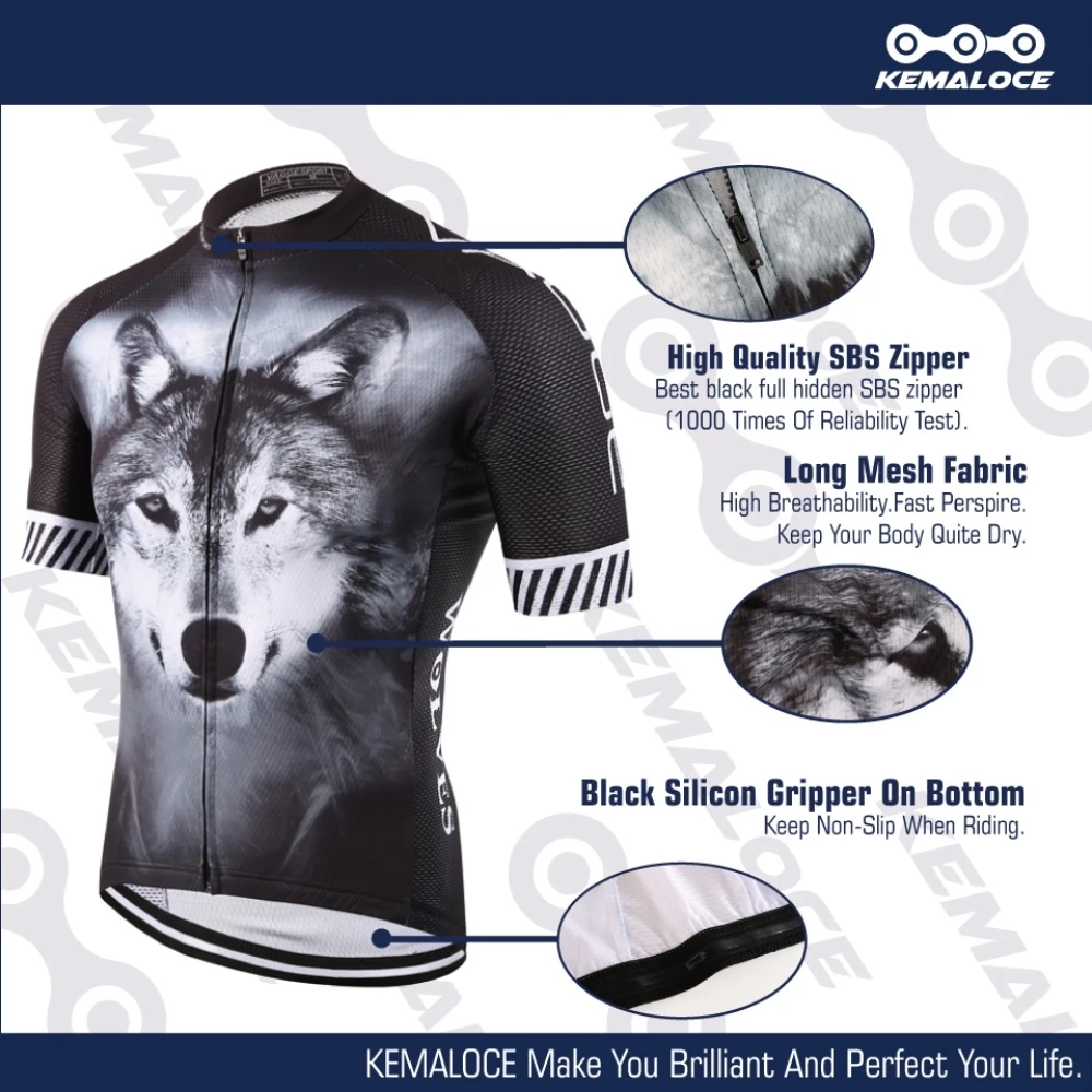 Новая велосипедная одежда с сублимационной печатью от KEMALOCE Wolf, летняя дышащая черная велосипедная одежда, быстросохнущая компрессионная велосипедная одежда