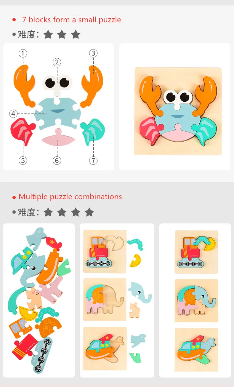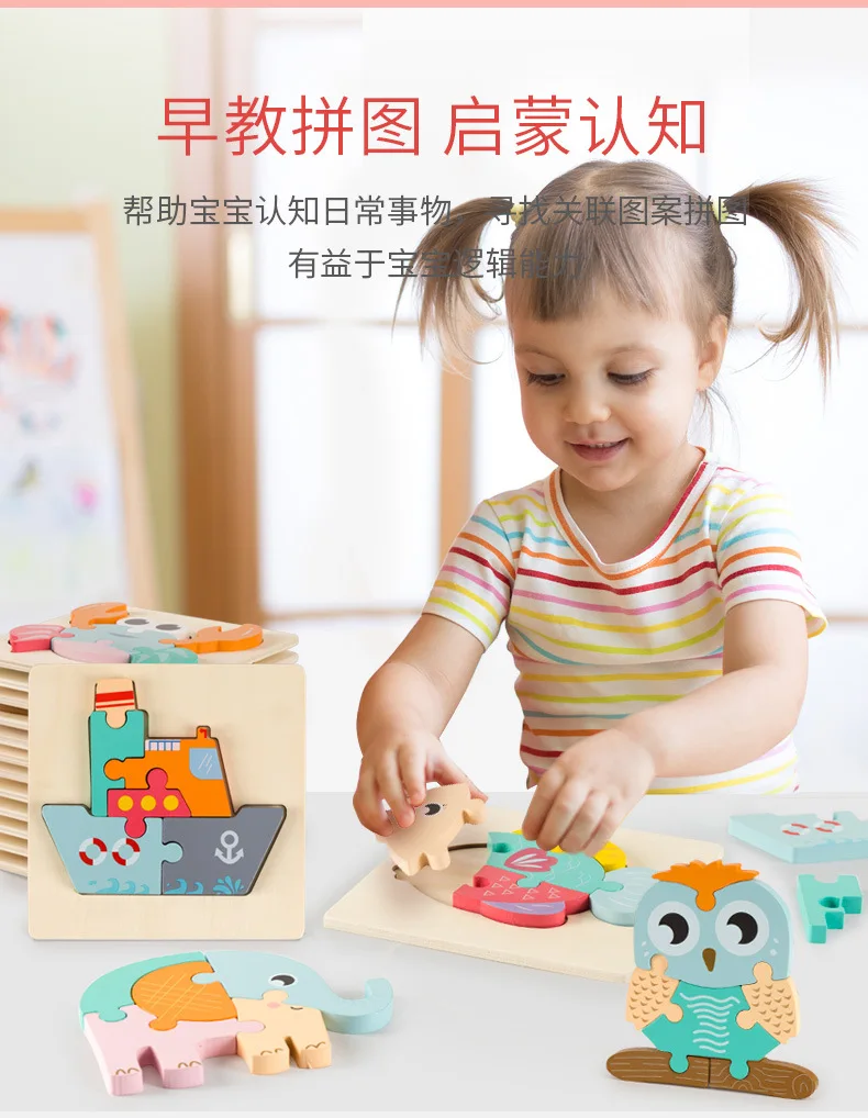 Детские игрушки, деревянные 3d пазлы, Мультяшные животные, интеллек...