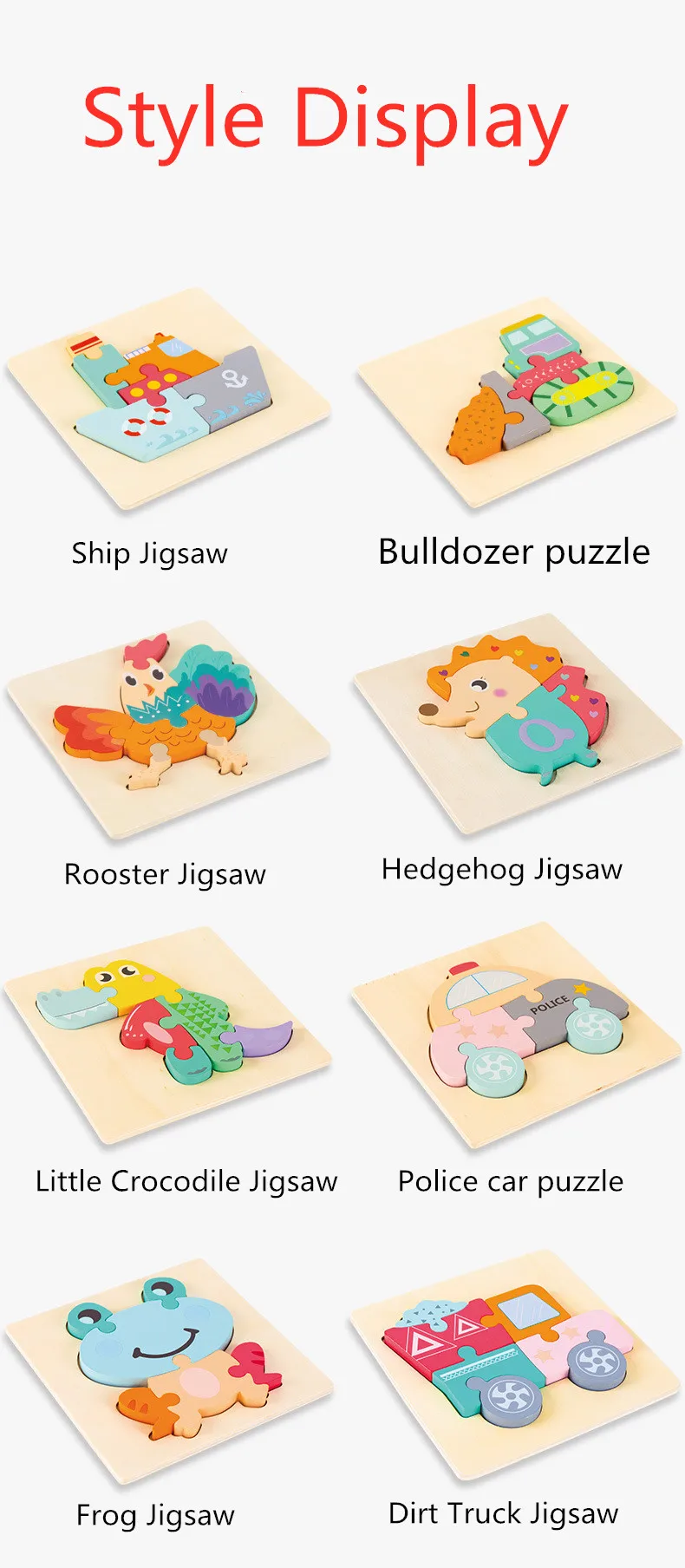 Название продукта: деревянный пазлВес изделия: около 100 гПримечание: Не стиратьРазмер продукта: 15*15*0,9 смРисунок: 16 стилей, как показано на рисунке Узор состоит из 5-7 кусочков пазла, с вогнутой и выпуклой конструкцией нижней пластины, чтобы помочь детям исправить пазл и облегчить его