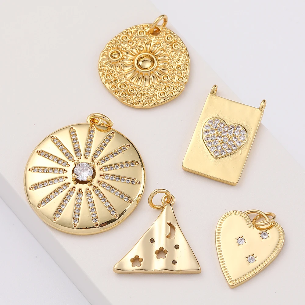 Геометрическая подвеска в форме сердца, звезд, для изготовления ювелирных изделий, Золотая подвеска, дизайнерский Шарм для самостоятельного изготовления сережек, ожерелий, браслетов, медной бабочки