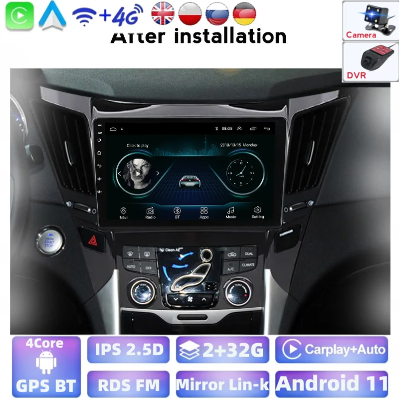 Автомагнитола для Hyundai Sonata 8, YF 2011-2015, Android, 2 Гб ОЗУ, GPS, мультимедийный видеоплеер, Wi-Fi, BT, стерео, без DVD
