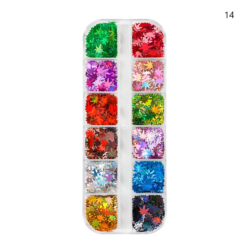 12 ячеекнабор, принадлежности для ногтей, кленовый лист, голографич...
