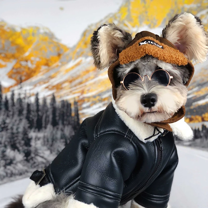 Зимняя одежда для собак, бархатная теплая утепленная кожаная куртка...