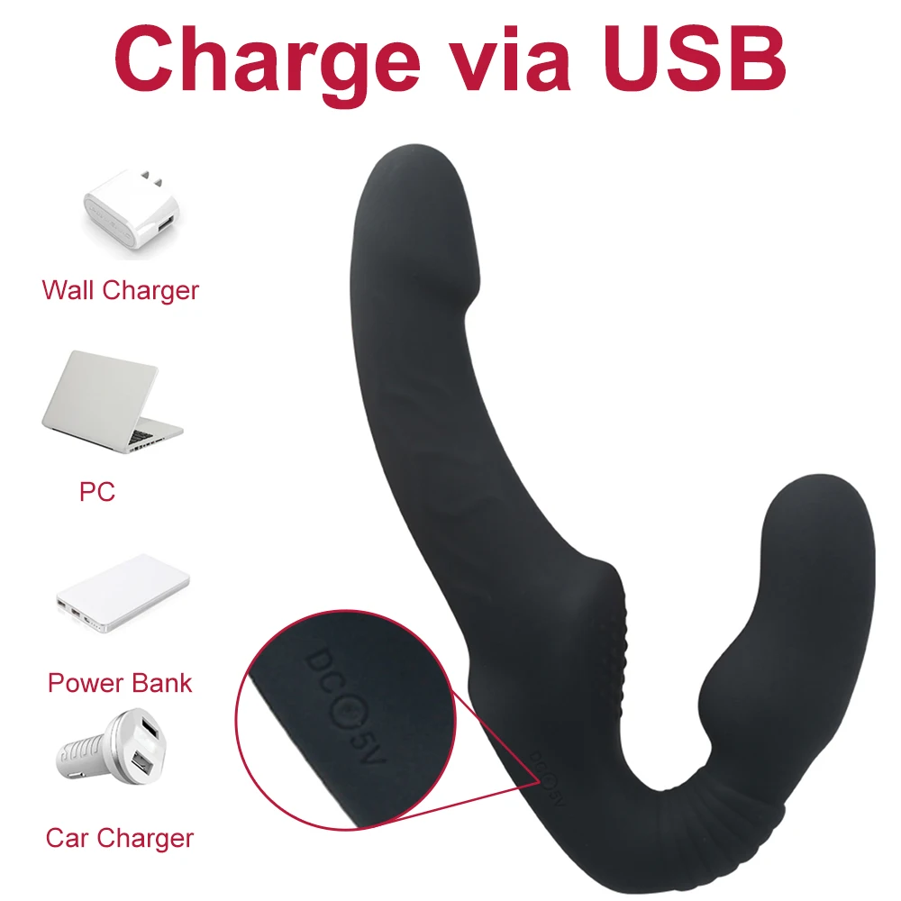 Фаллоимитатор без бретелек, вибратор для женщин, двойная головка, вибрирующий пенис для лесбиянок, эротический, игрушки для взрослых, секс-игрушки для пар