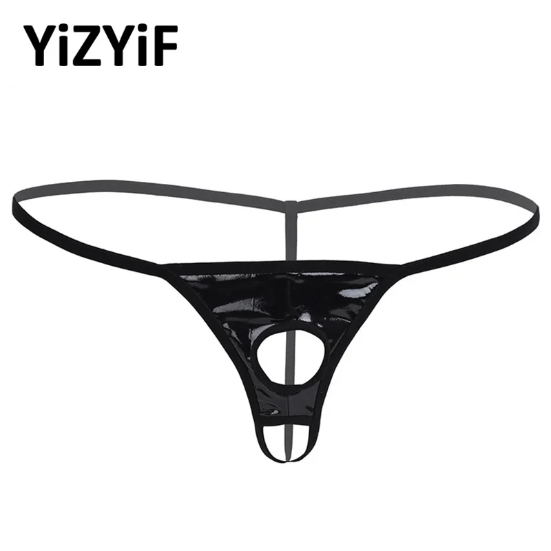 Для мужчин эротичное нижнее бельё Лакированная кожа стринги бикини трусы с отверстием для пениса гей горячие сексуальные трусики для секса
