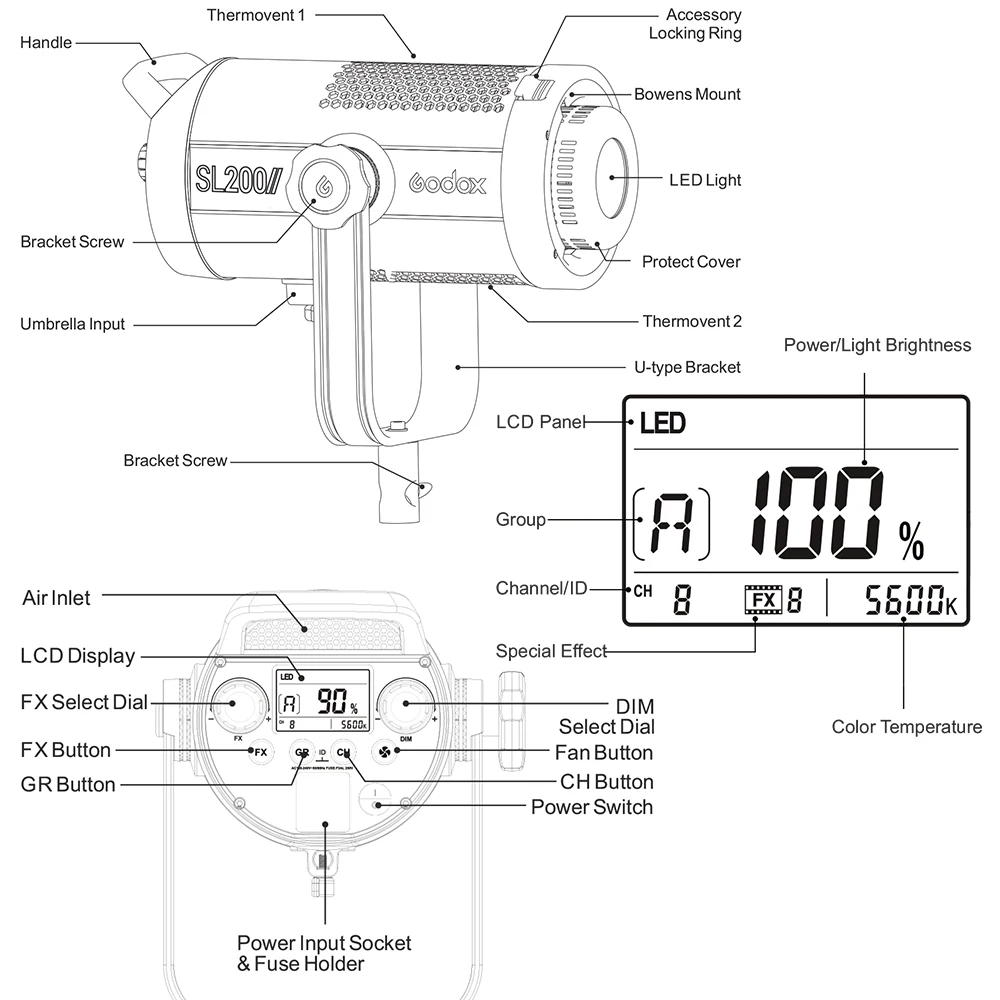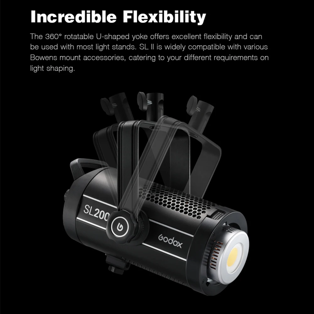 Светодиодная лампа для видеосъемки Godox SL200W II, дневной свет с креплением Bowens, сбалансированный 5600K 2,4G, беспроводная система X для прямых трансляций на youtube и интервью
