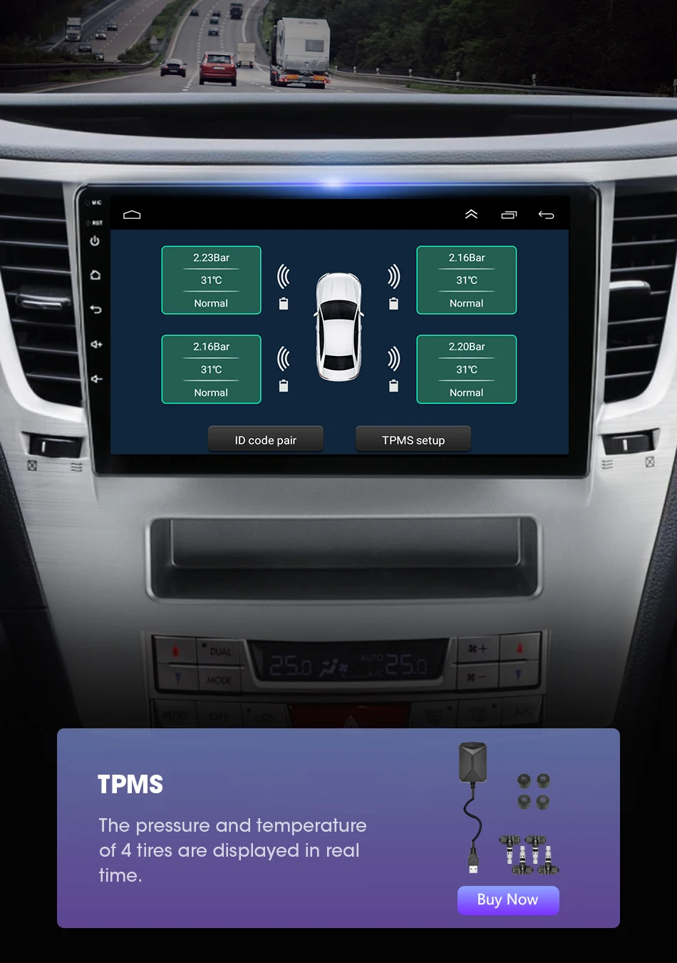 Поддержка TPMS Все больше и больше национальных стандартов производства автомобилей требуют, чтобы транспортные средства были оснащены устройствами сигнализации давления в шинах. Важное значение устройств сигнализации давления в шинах можно увидеть. Нажмите на картинку ниже, чтобы купить устройство сигнализации давления в шинах, подключите радио и отзывы о состоянии шин в режиме реального времени.