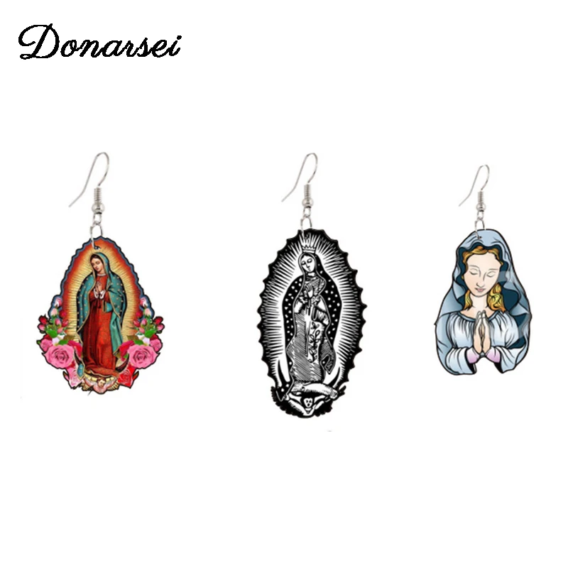 Акриловые серьги Donarsei для женщин, классические висячие украшения в виде Матери Бога, христианская Дева Мария, религиозные украшения