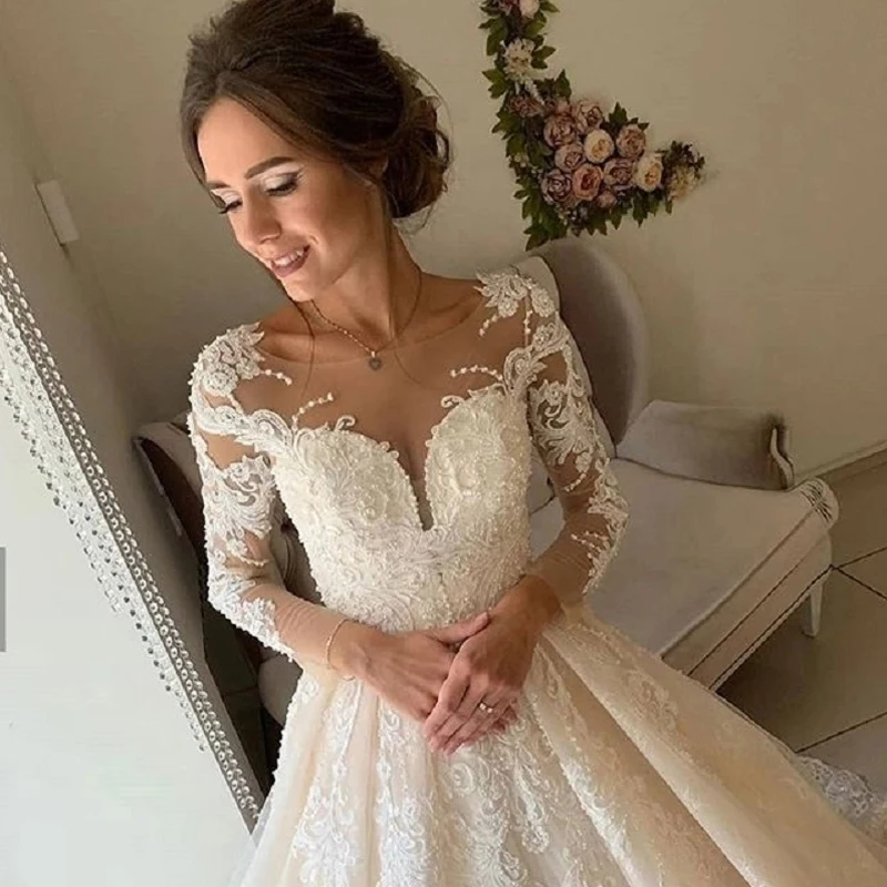 Женское свадебное платье с длинным рукавом, элегантное бальное плат...