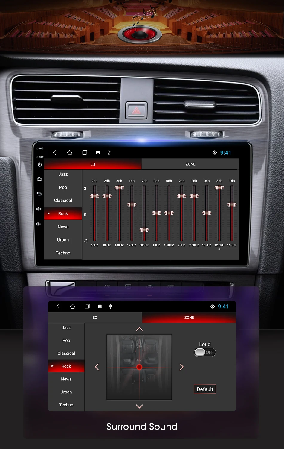 Встроенная настройка по умолчанию составляет 12 эквалайзеров (до 32 эквалайзеров), а объемный звук можно настроить одновременно, позволяя вам погрузиться в замечательную музыку.