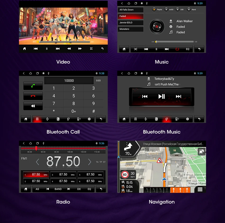 По сравнению с оригинальным автомобилем, экран больше, цвета более яркие, и он поддерживает просмотр под разными углами. Новая рама сделана в соответствии с оригинальным автомобилем, который идеально сочетается с вашим автомобилем и прост в установке.