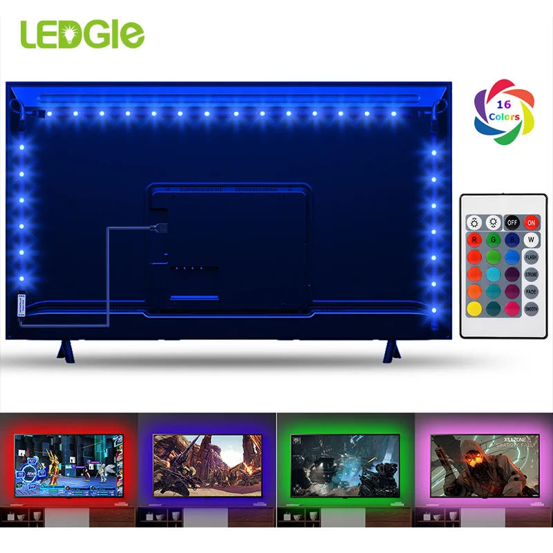 Светодиодный GLE RGB светодиодный полосы светильник гибкий ТВ Подсветка Светильник Универсальный USB Подсветка светильник комплект, пульт дистанционного управления с 24 кнопками, IP20, 120 ° угол луча, 16 Цвета